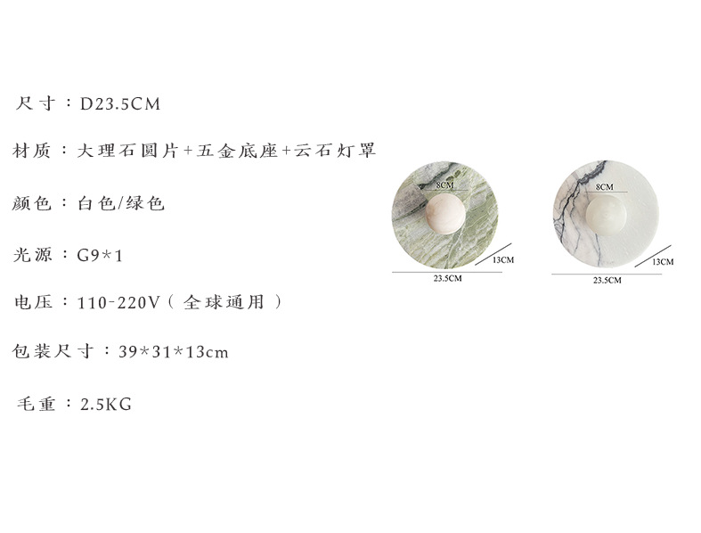 아일랜드 녹색 대리석 벽 램프 프랑스어 빛 럭셔리 스타일 장식 램프 디자이너 예술적 분위기 램프 대리석 벽 램프스토어 가기