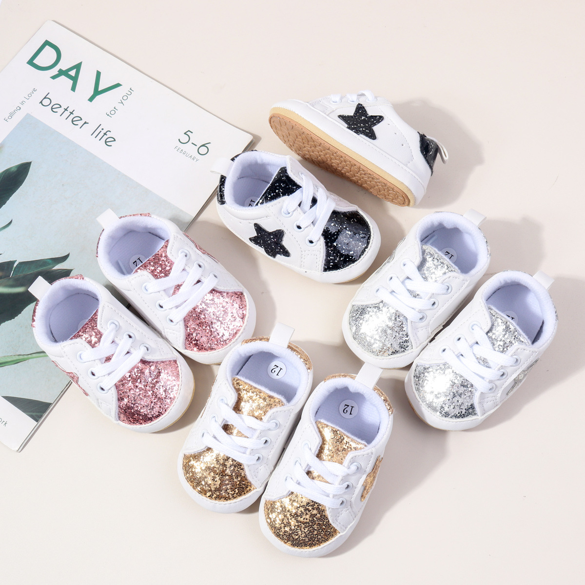 아기 걸음마 신발 새로운 스팽글 남녀 아기 신발 고무 밑창 미끄럼 방지 신발 5107