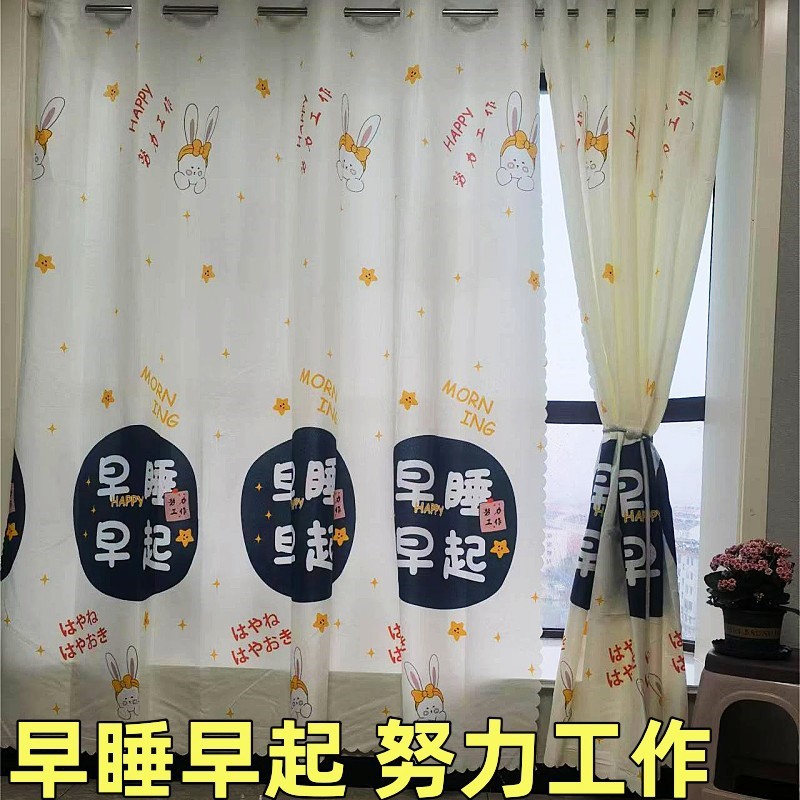 저렴한 임대 베이 창 짧은 커튼 하프 커튼 작은 커튼 패브릭 침실 기숙사 반음영 완제품 특별 통관 우편스토어 가기