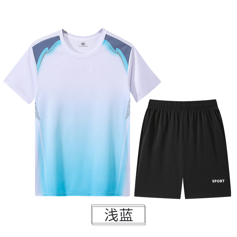 스포츠 정장 남자 여름 얇은 얼음 실크 티셔츠 반팔 운동복 러닝 속건 의류 농구 의류 배드민턴 의류