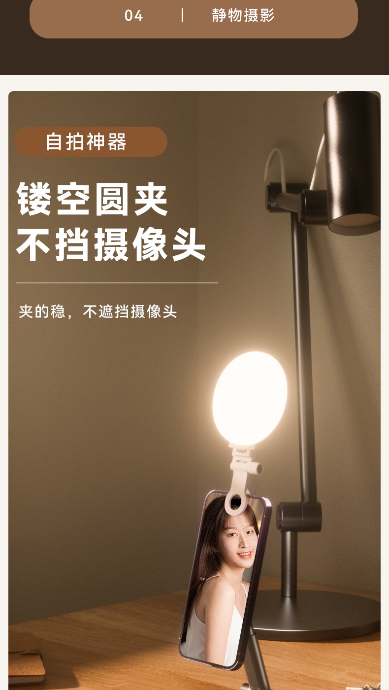 "인기 판매 모델" 휴대폰 라이브 방송용 LED 3색 클립 원형 필 라이트 뷰티 필 라이트 휴대용 카메라스토어 가기
