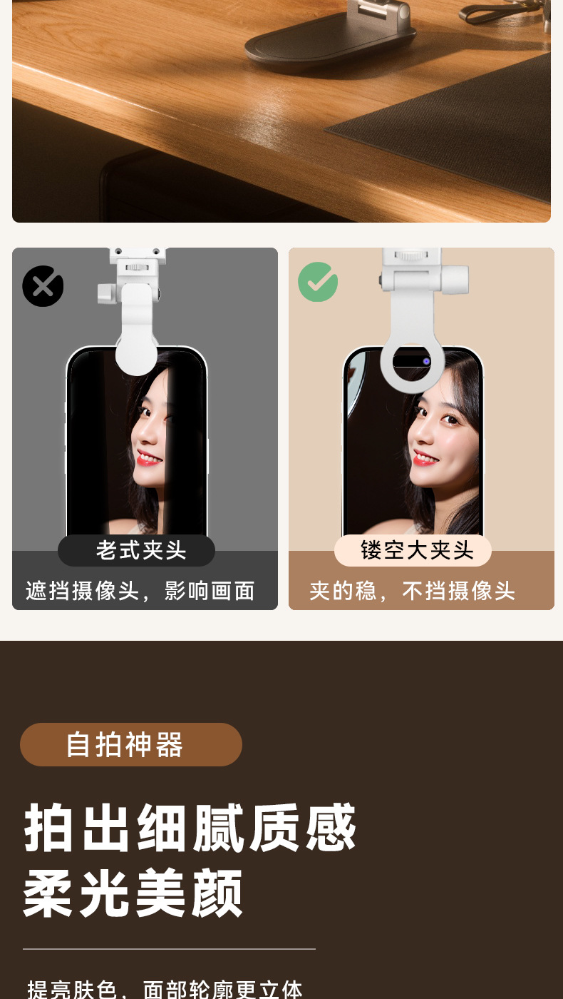 "인기 판매 모델" 휴대폰 라이브 방송용 LED 3색 클립 원형 필 라이트 뷰티 필 라이트 휴대용 카메라