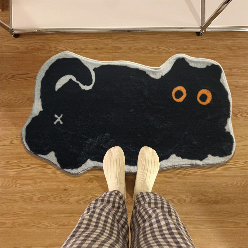 Ins 스타일 귀여운 검은 고양이 모조 캐시미어 바닥 매트 욕실 흡수성 발 매트 욕실 문 매트 홈 침실 침대 옆 담요스토어 가기