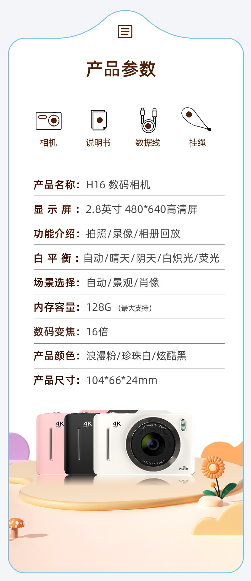 H16 학생 파티 디지털 카메라 캠퍼스 HD ccd 카메라 보급형 휴대용 여행 vlog 카드 카메라스토어 가기