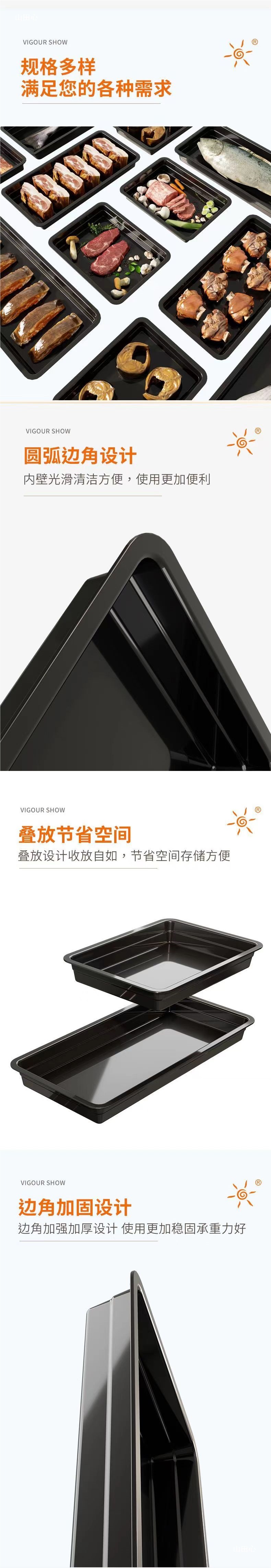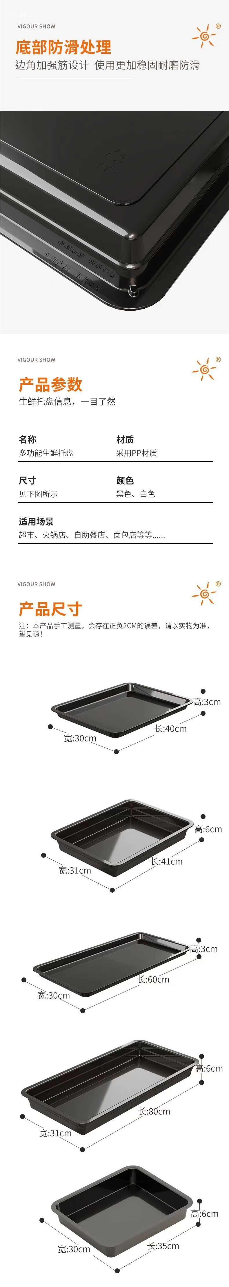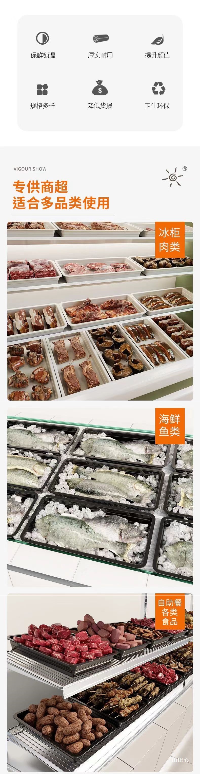 슈퍼마켓 돼지고기 트레이 케이터링 상업용 신선한 고기 빵 디스플레이 플레이트 검정색 냉동고 직사각형 플라스틱 트레이