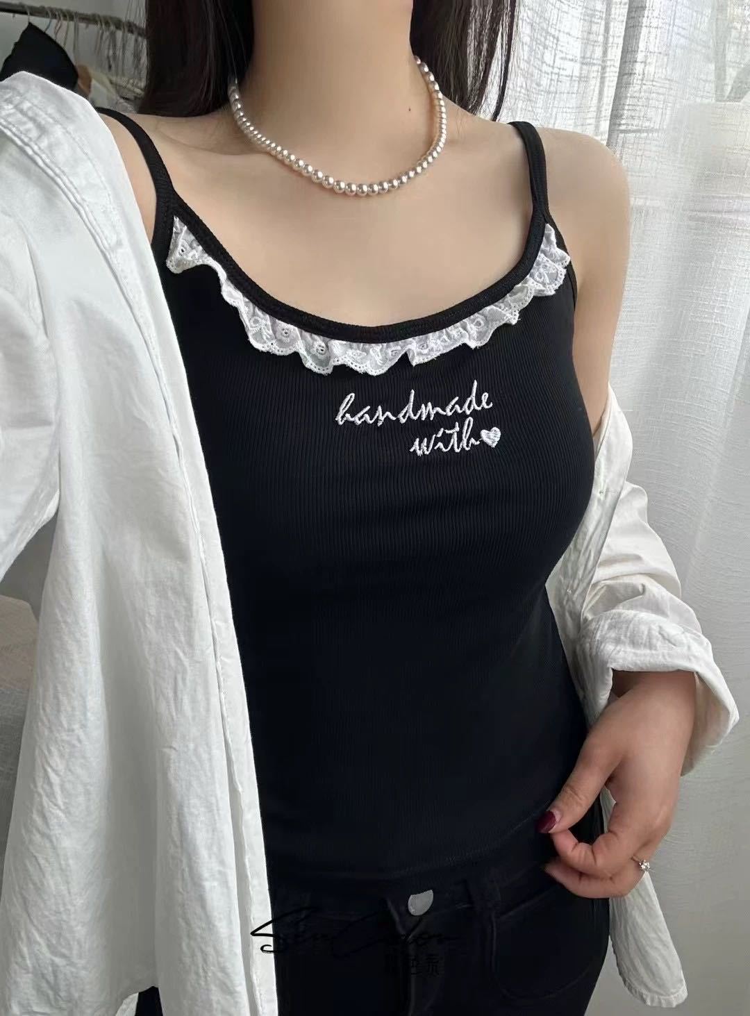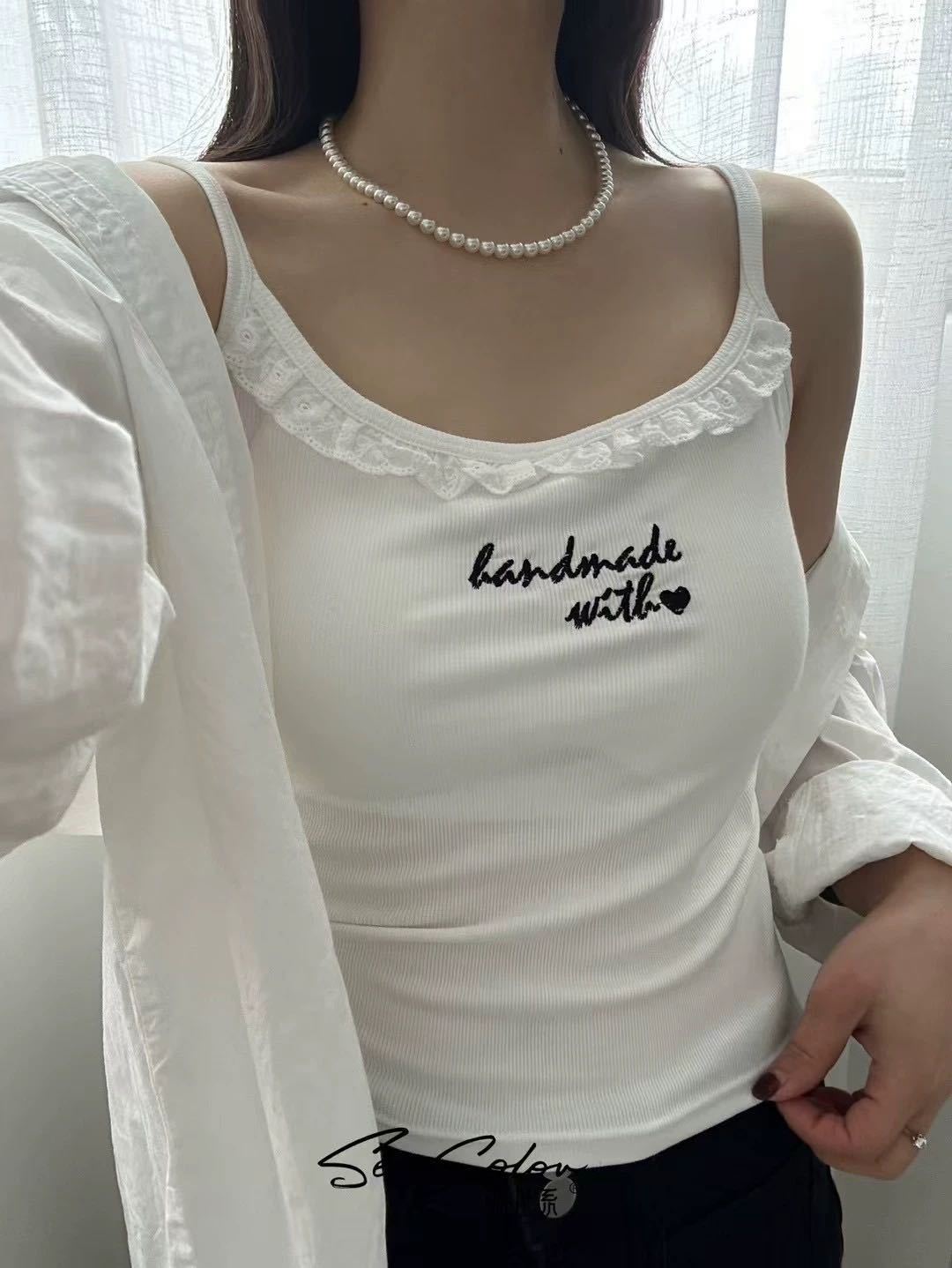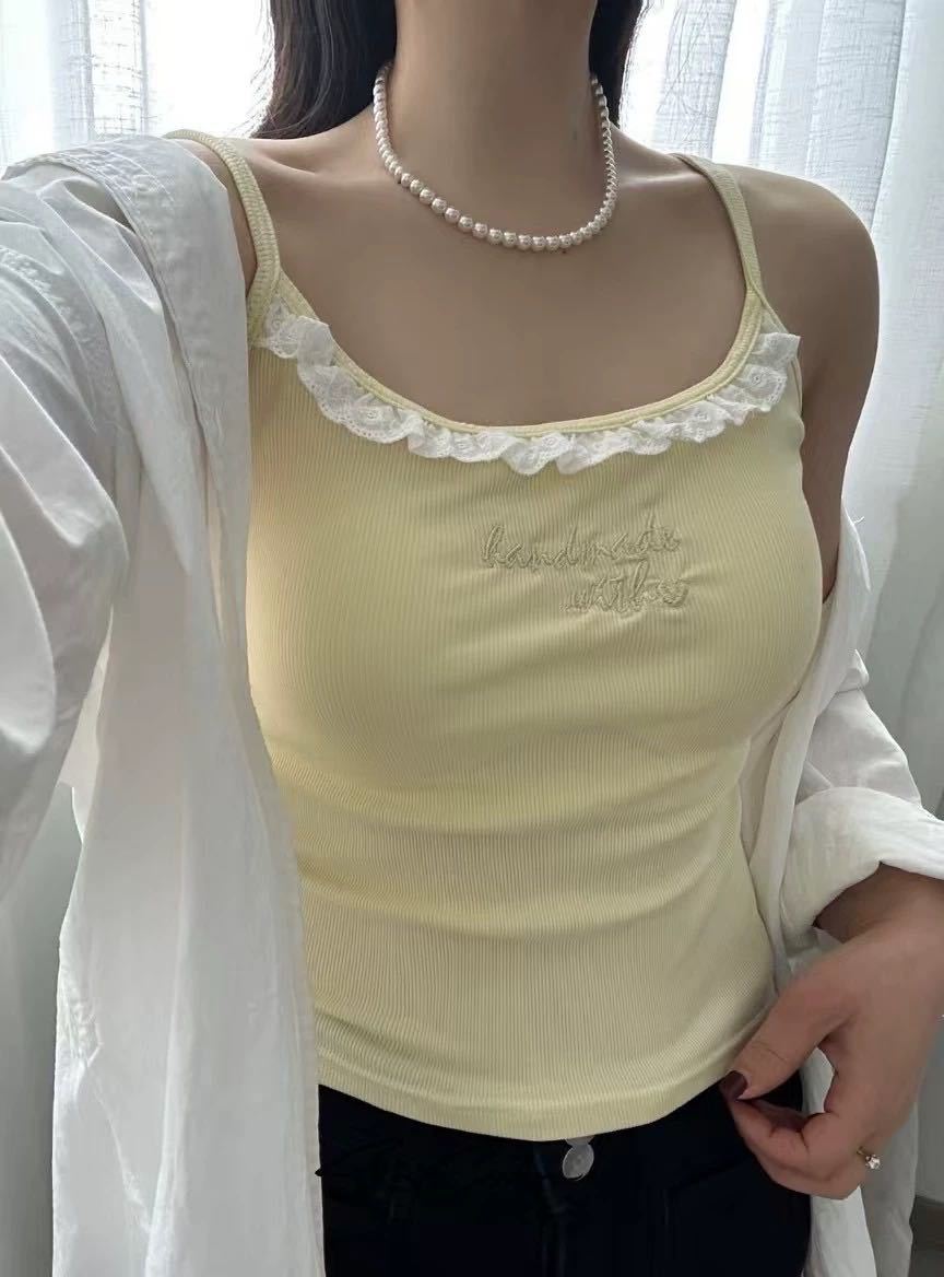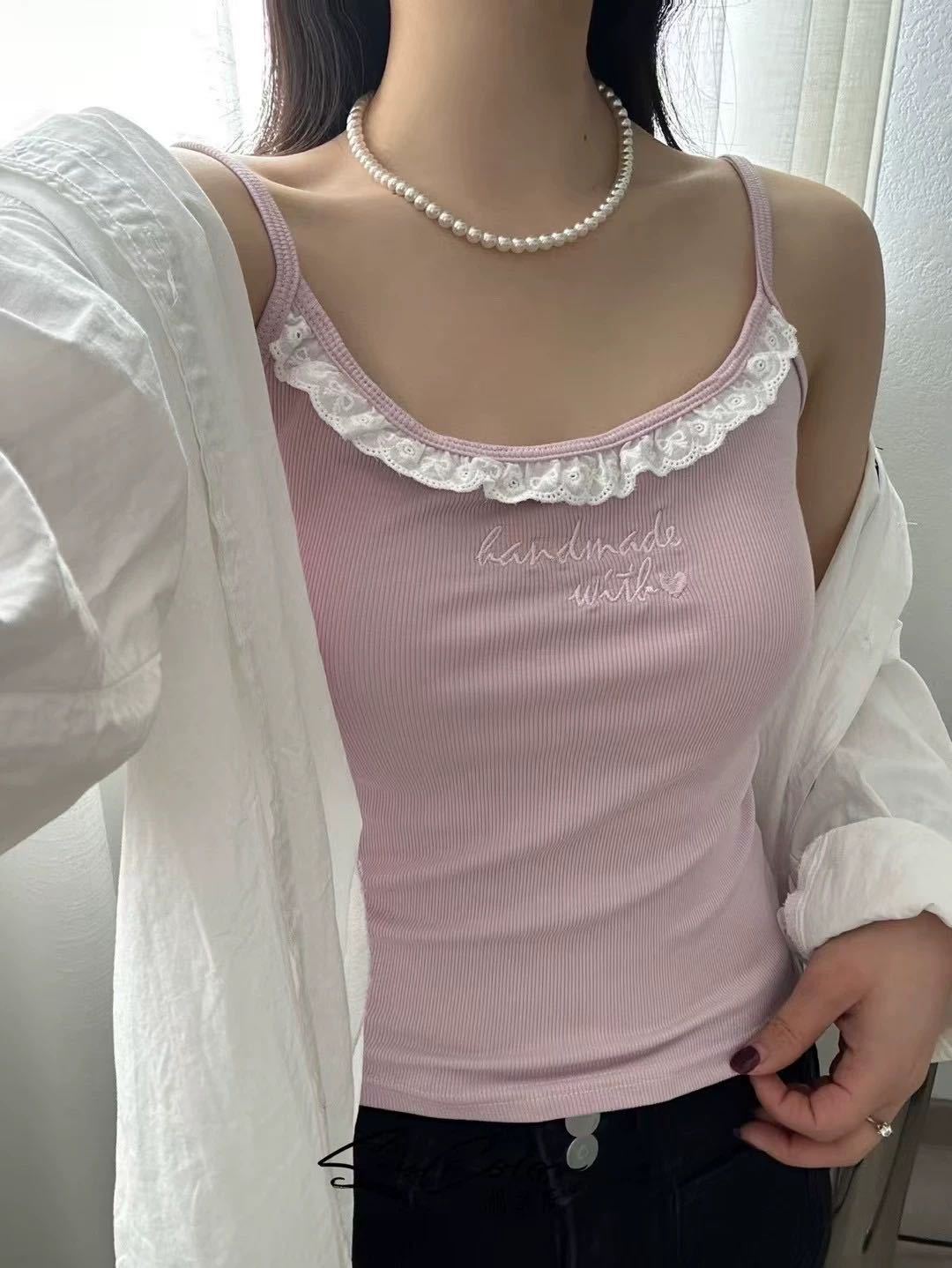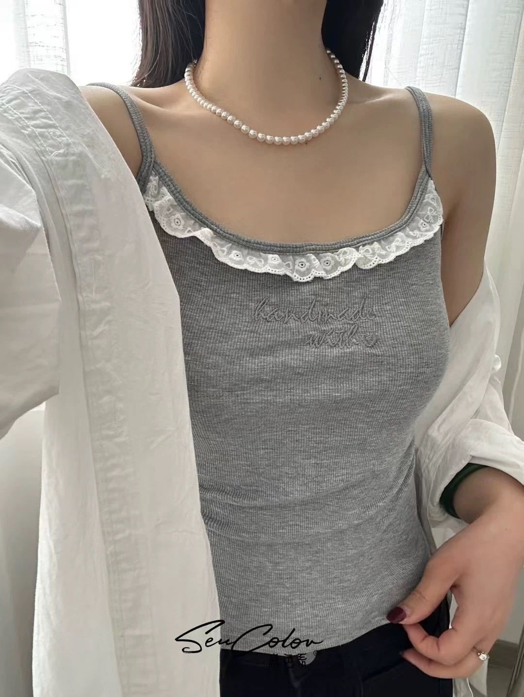 1905 # 순수한 욕망 레이스 자수 카미 솔 조끼 여성 가슴 패드 내부 입고있는 외부 착용 디자인 감각 슬림 핏 슬림 탑