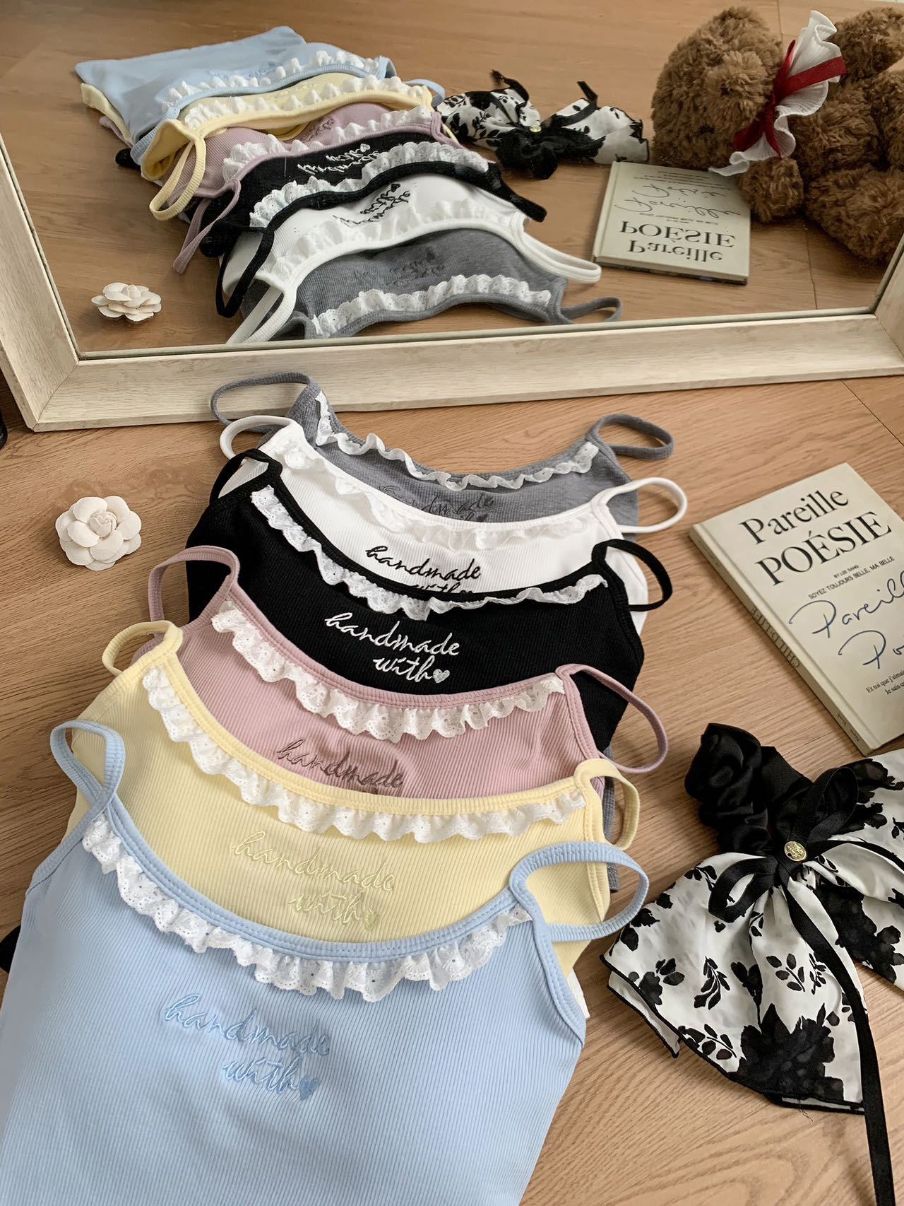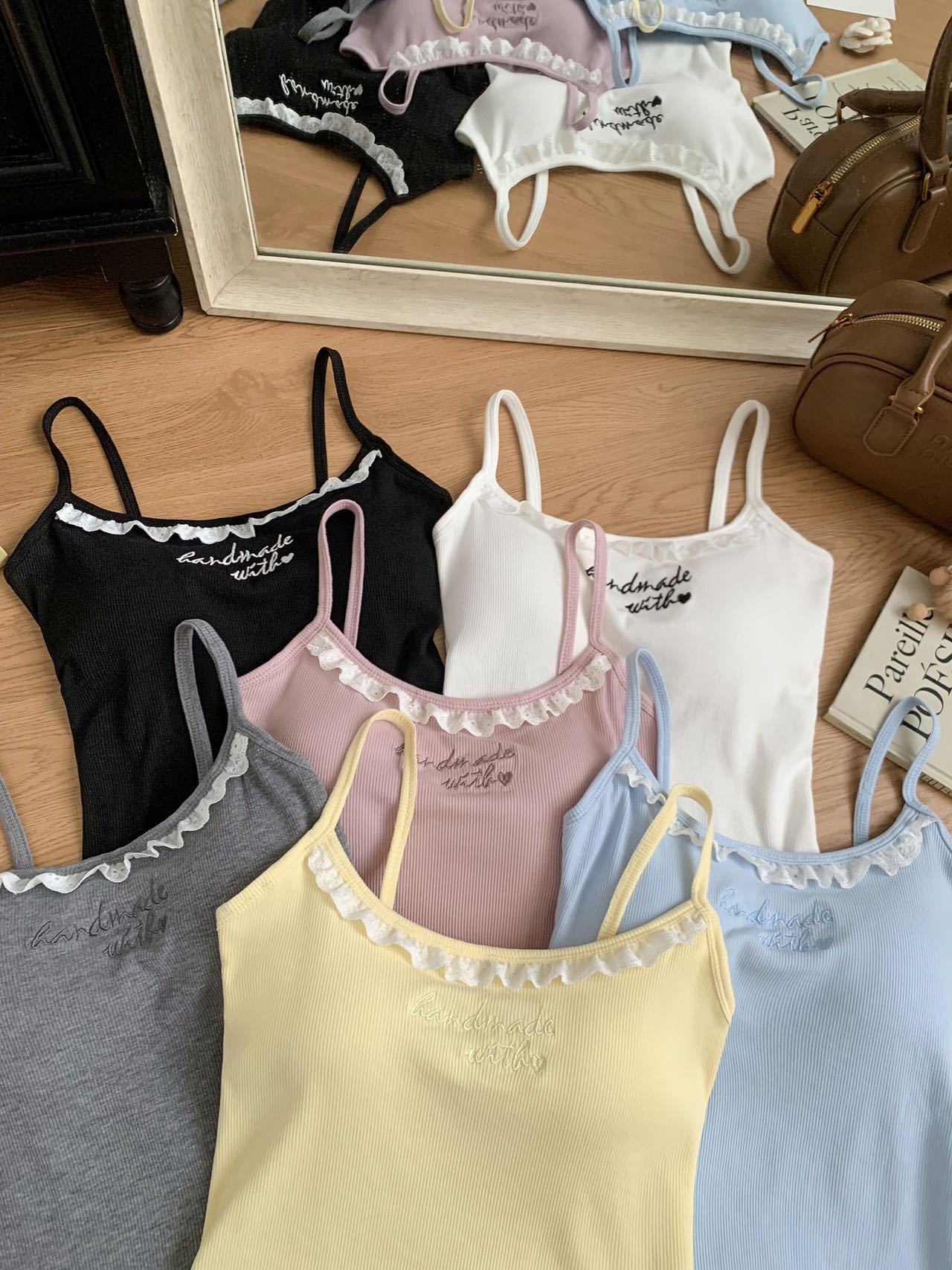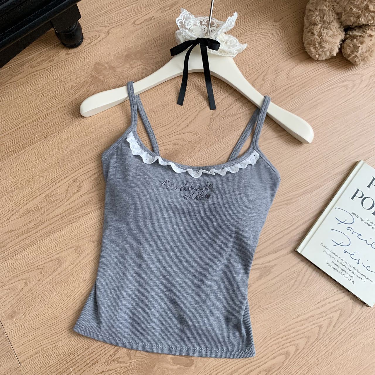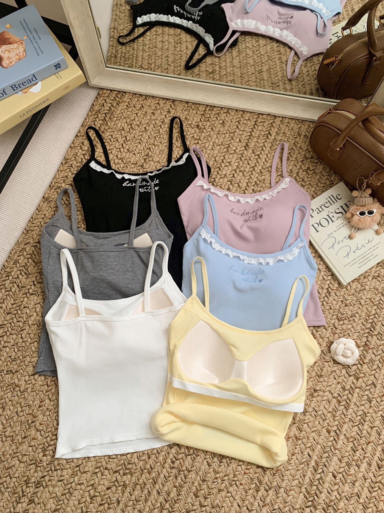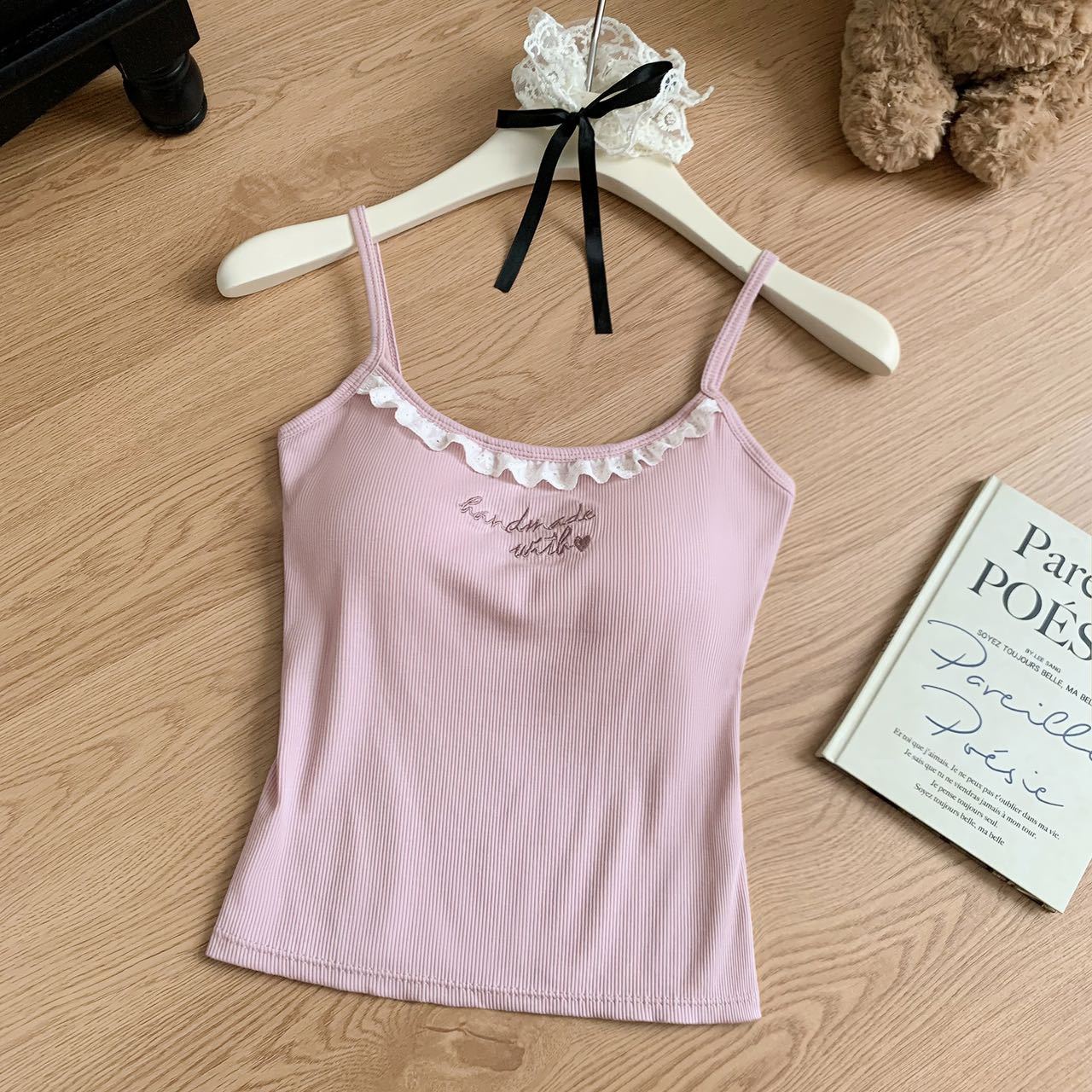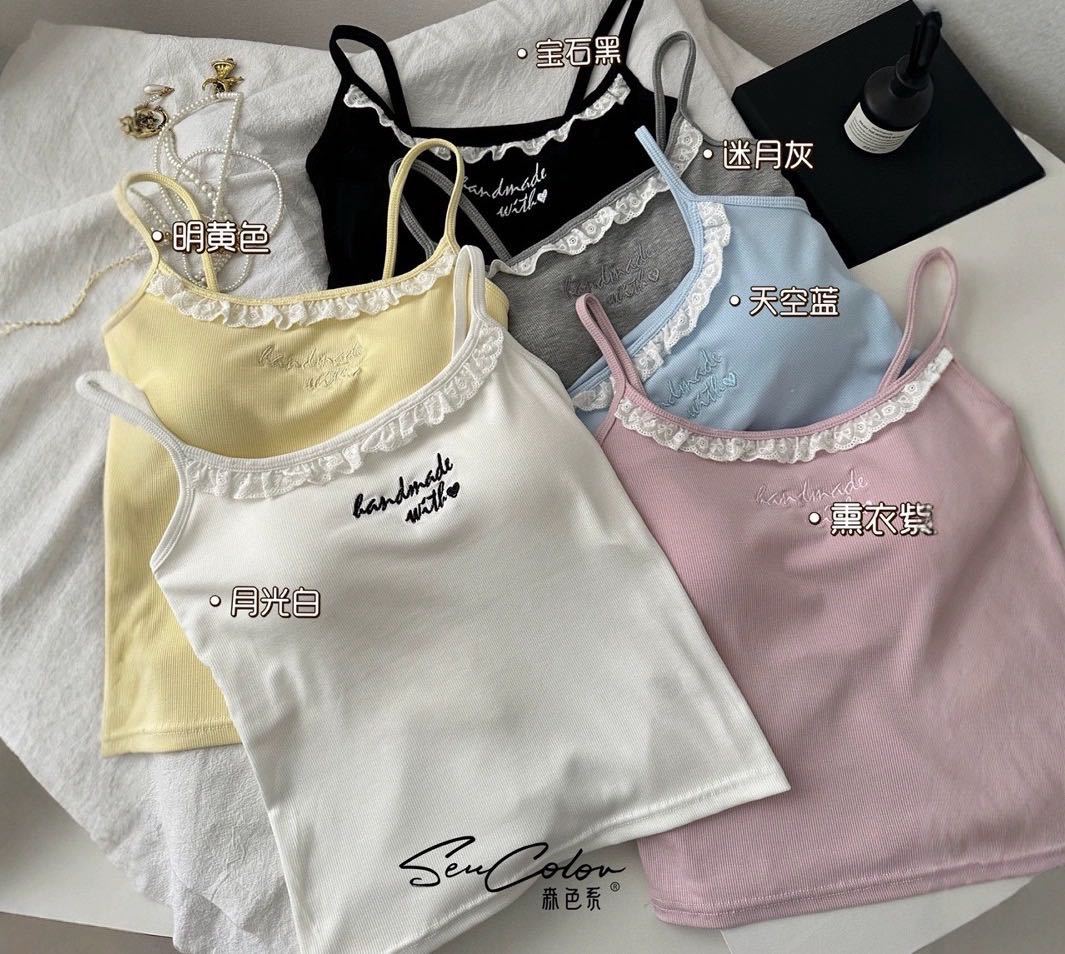 1905 # 순수한 욕망 레이스 자수 카미 솔 조끼 여성 가슴 패드 내부 입고있는 외부 착용 디자인 감각 슬림 핏 슬림 탑