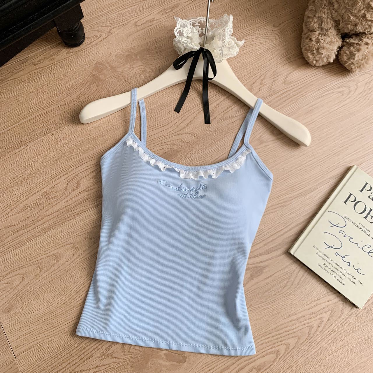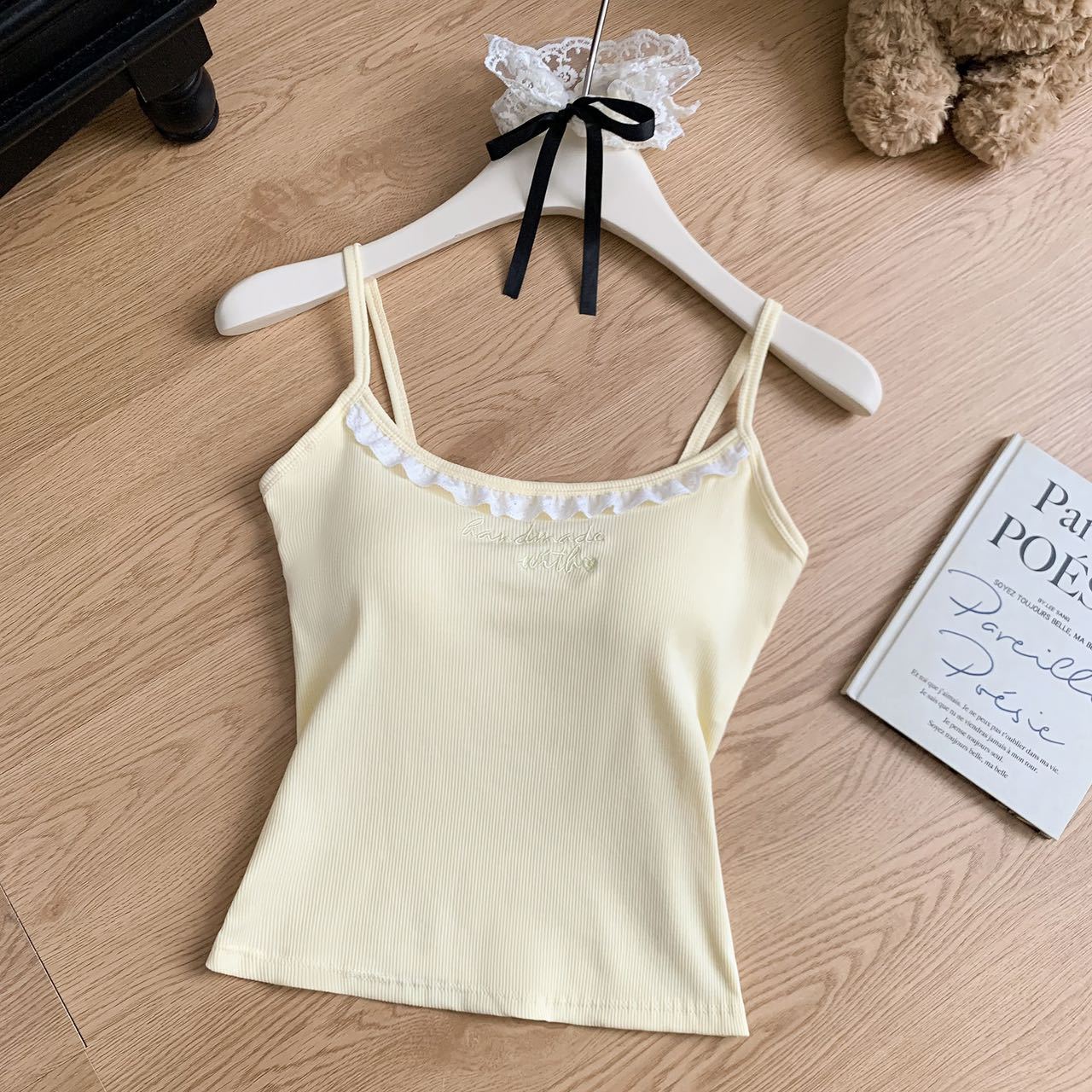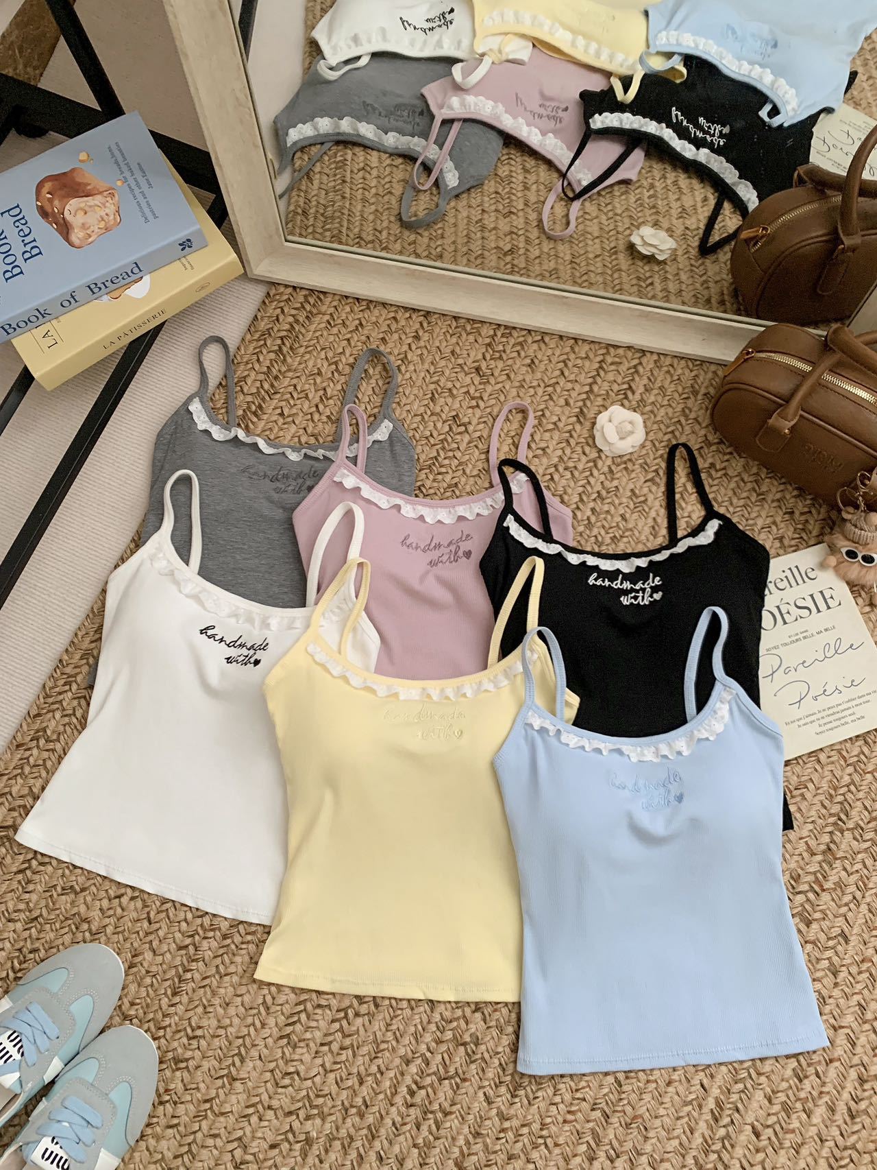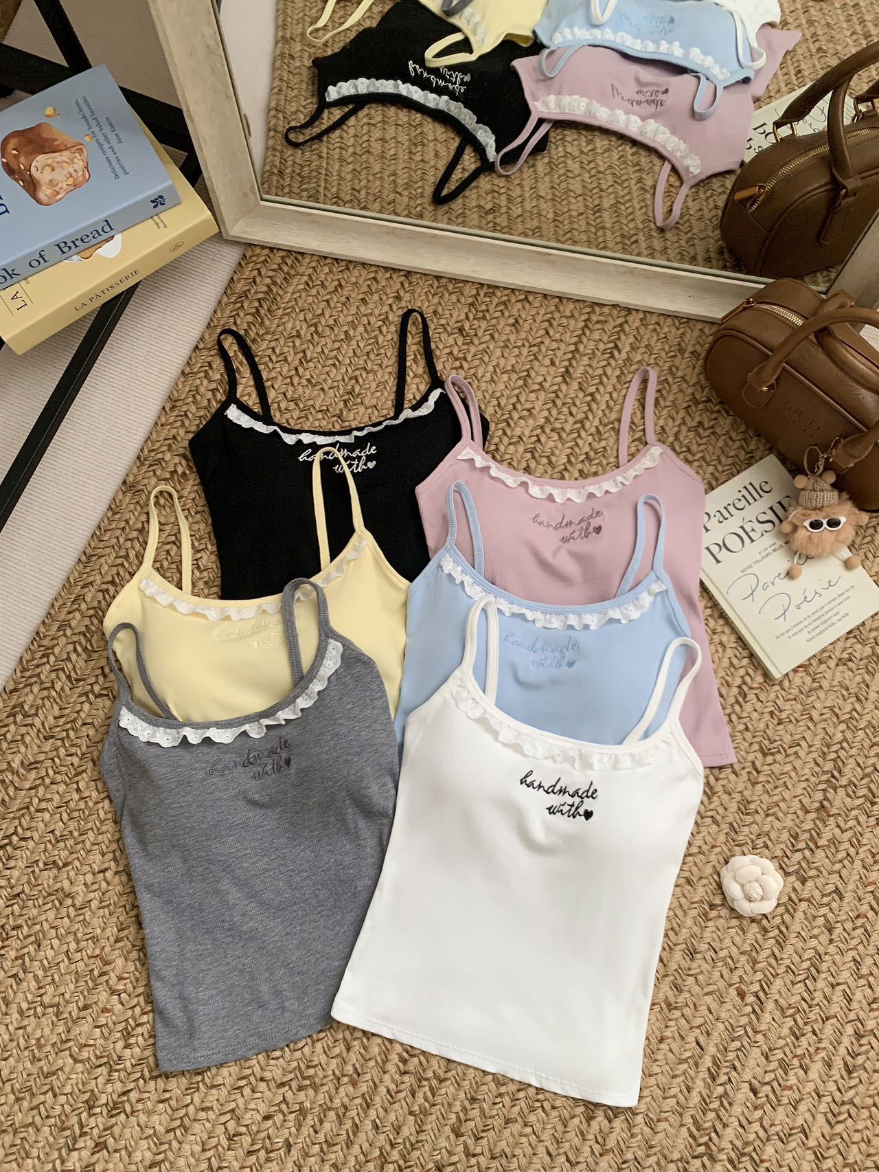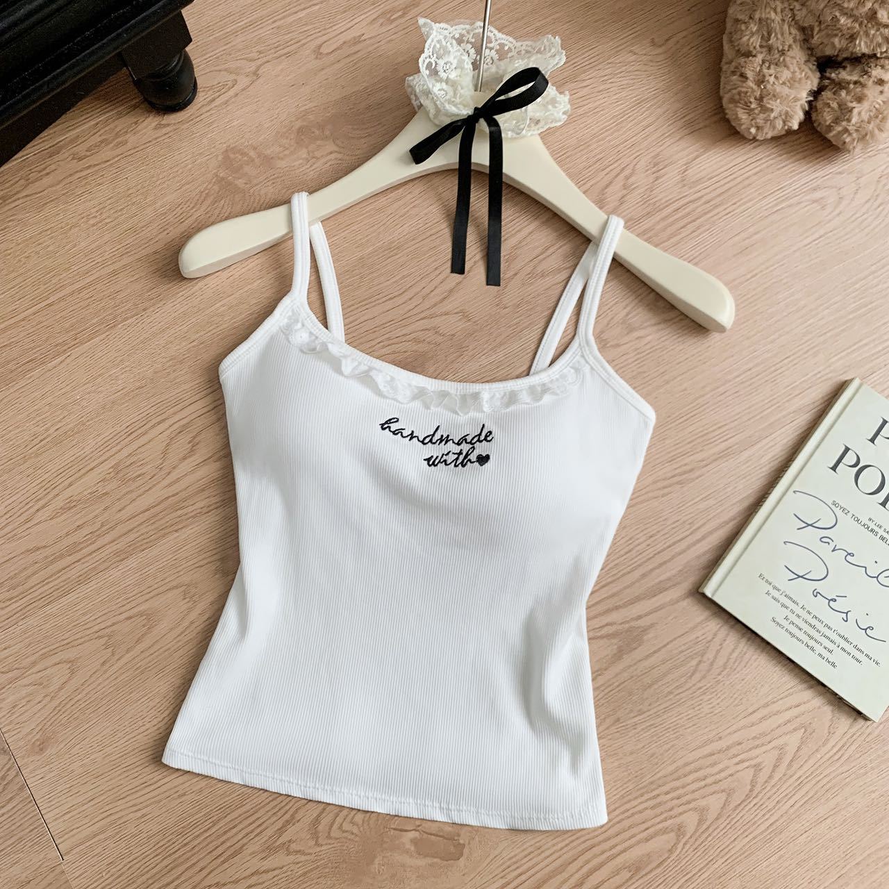 1905 # 순수한 욕망 레이스 자수 카미 솔 조끼 여성 가슴 패드 내부 입고있는 외부 착용 디자인 감각 슬림 핏 슬림 탑