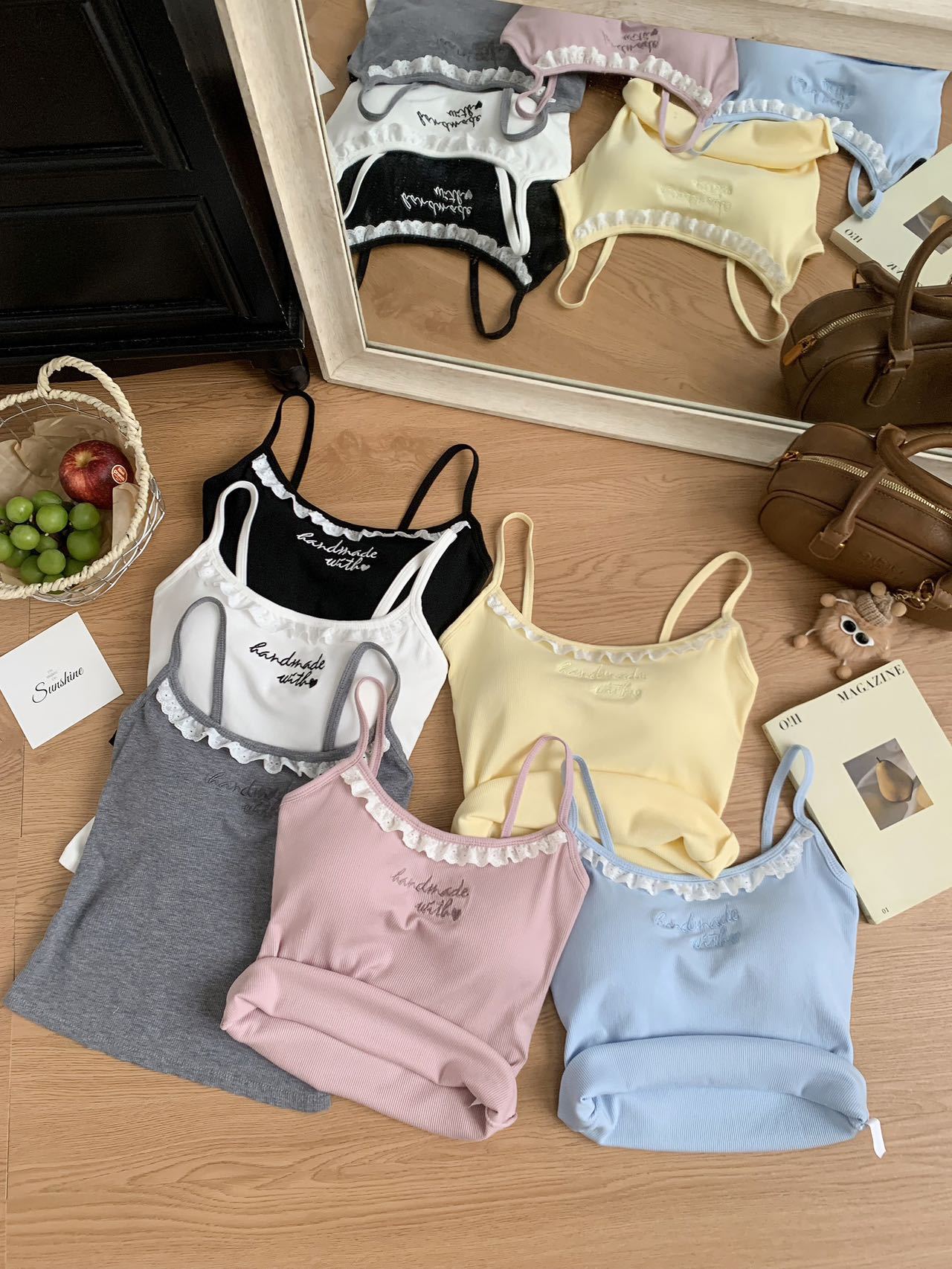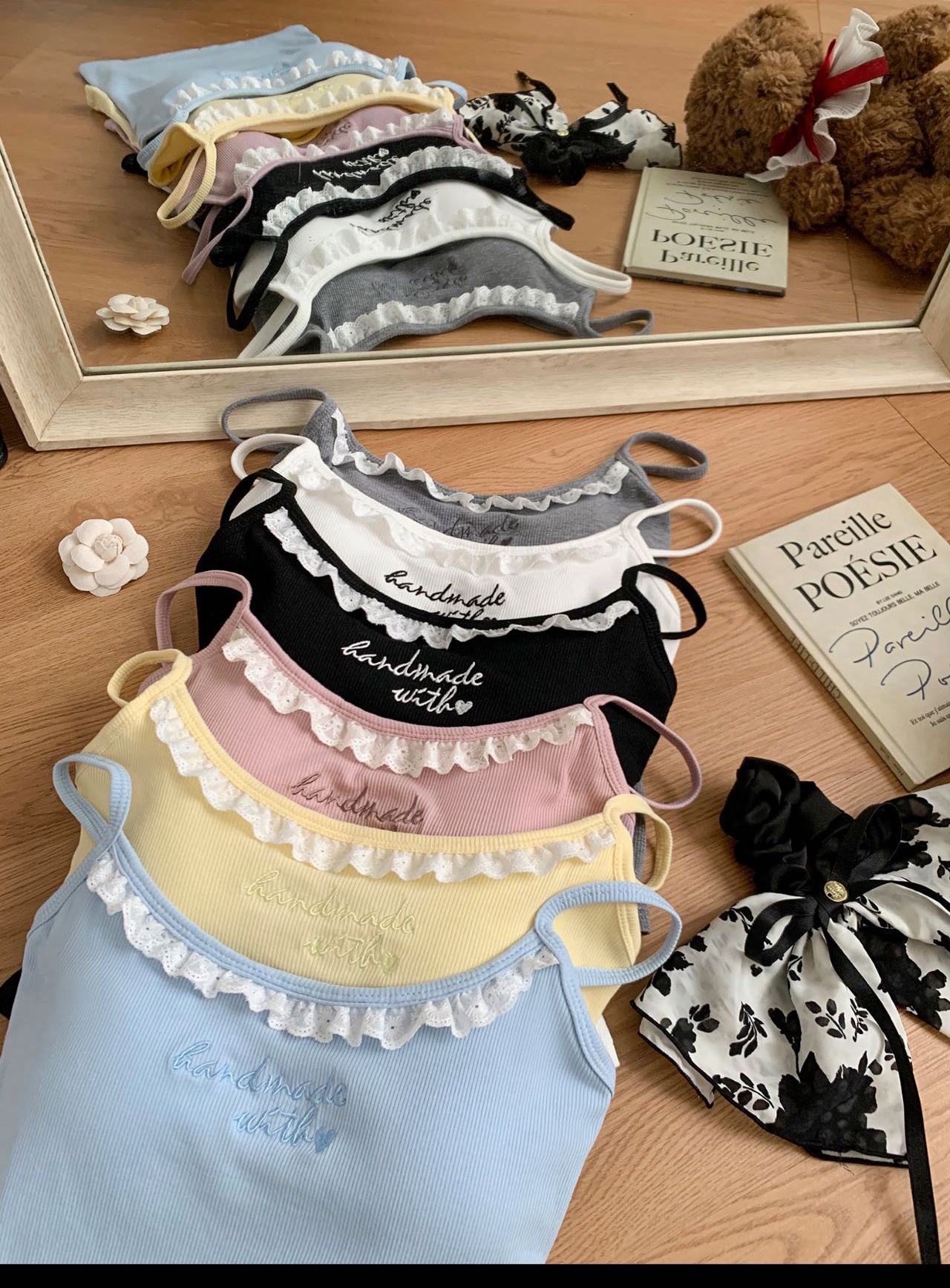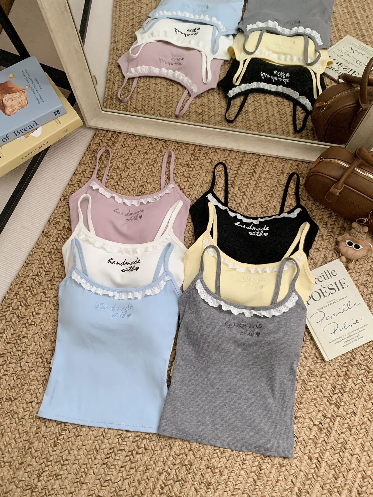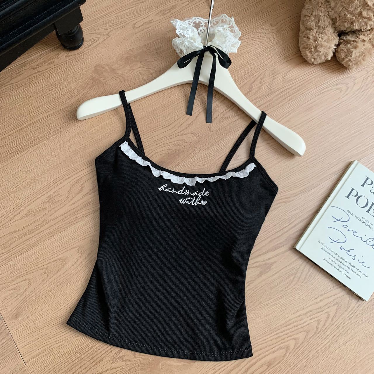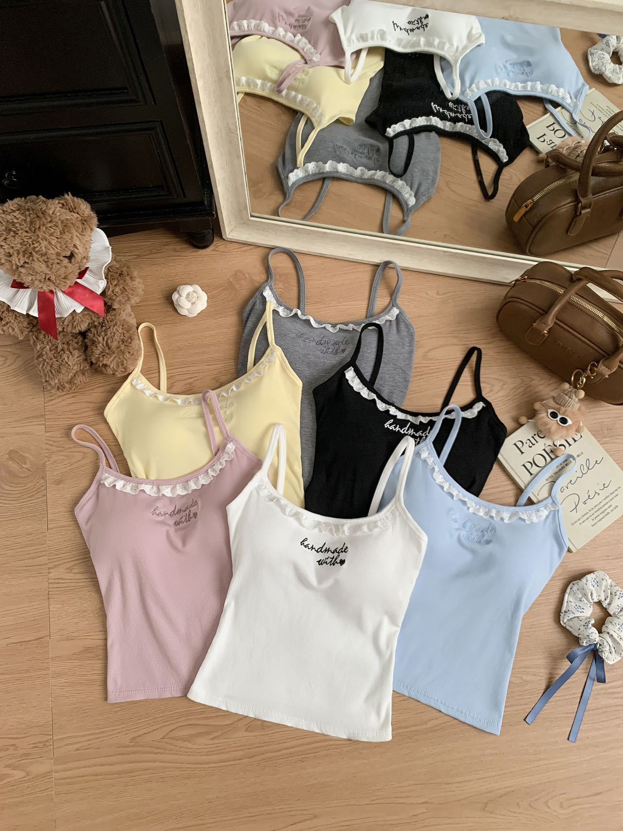 1905 # 순수한 욕망 레이스 자수 카미 솔 조끼 여성 가슴 패드 내부 입고있는 외부 착용 디자인 감각 슬림 핏 슬림 탑