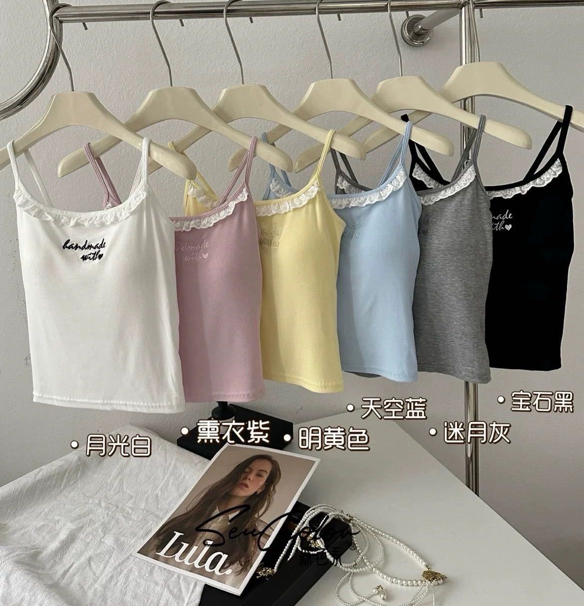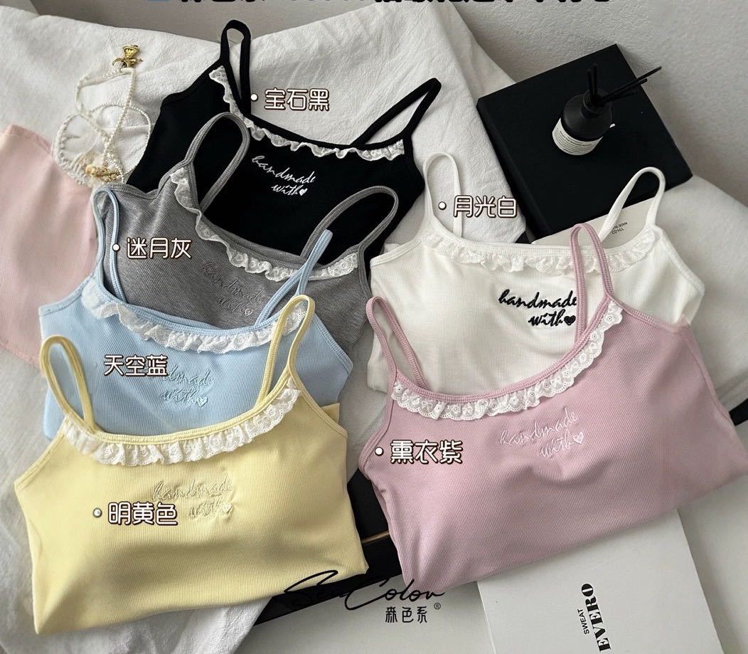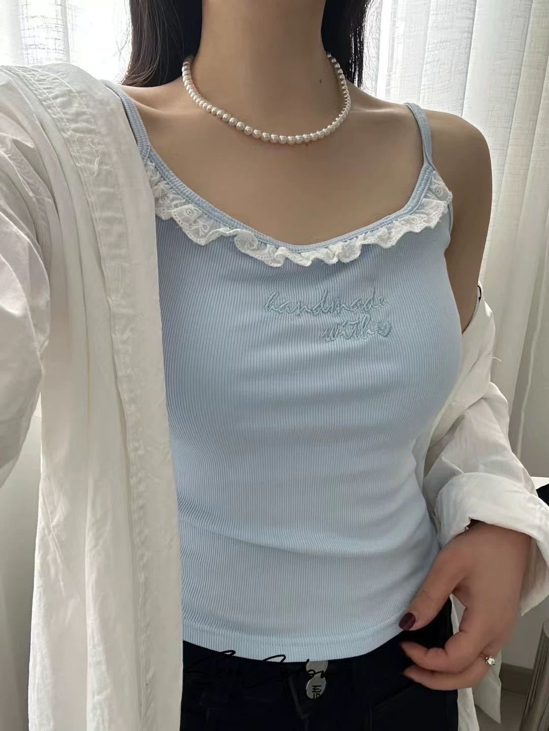 1905 # 순수한 욕망 레이스 자수 카미 솔 조끼 여성 가슴 패드 내부 입고있는 외부 착용 디자인 감각 슬림 핏 슬림 탑스토어 가기
