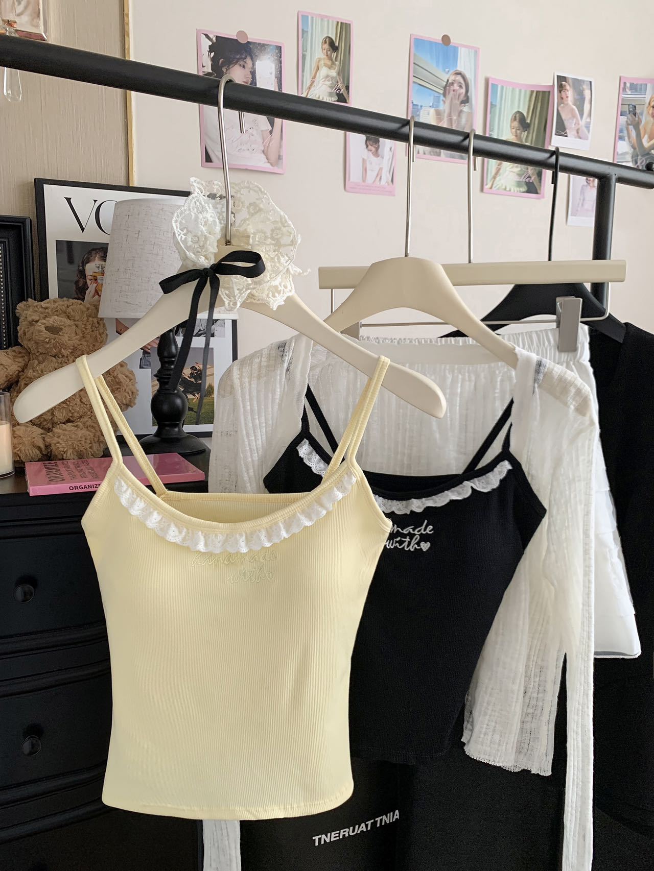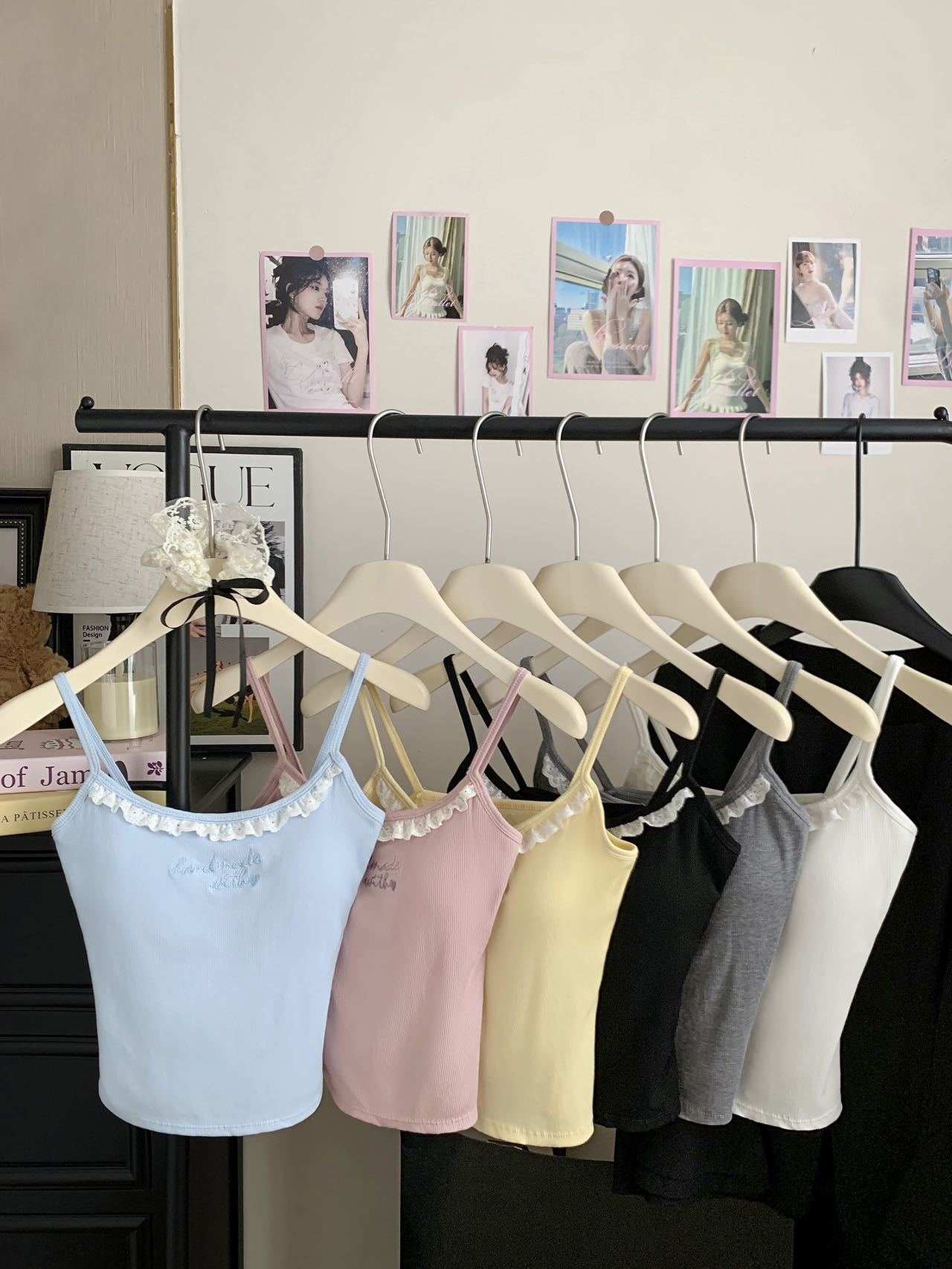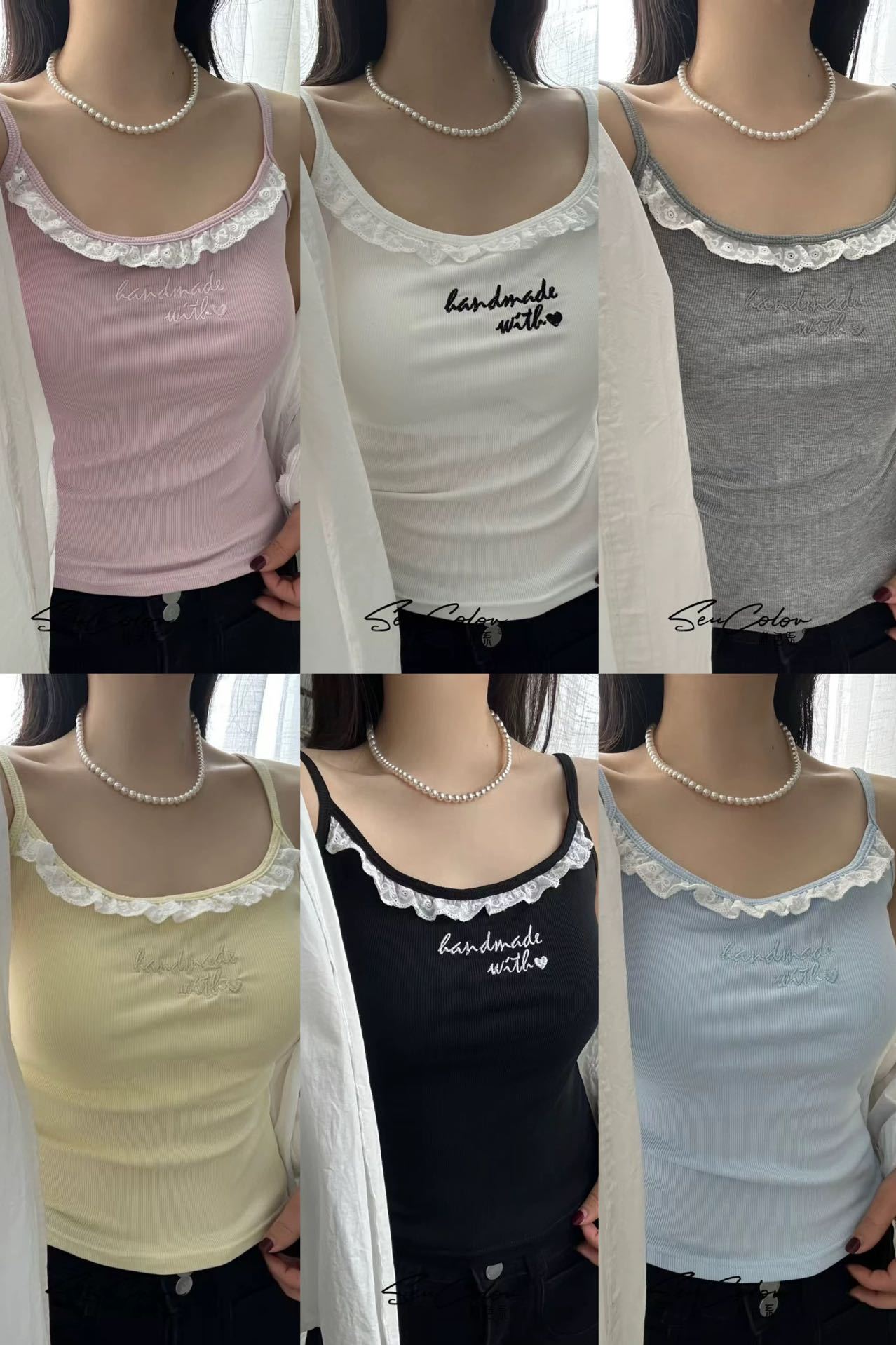 1905 # 순수한 욕망 레이스 자수 카미 솔 조끼 여성 가슴 패드 내부 입고있는 외부 착용 디자인 감각 슬림 핏 슬림 탑스토어 가기