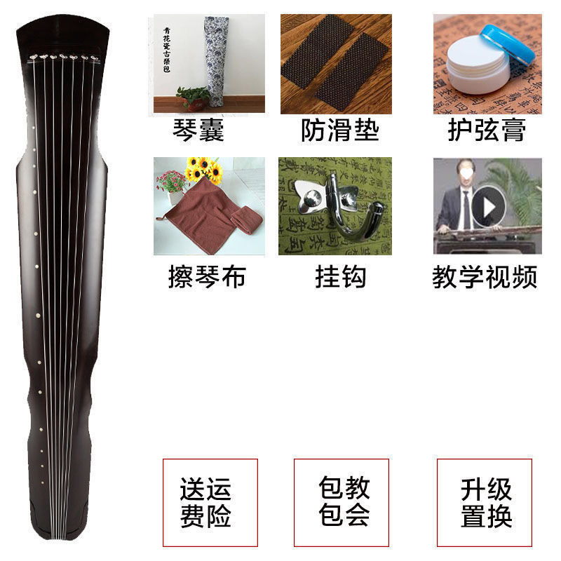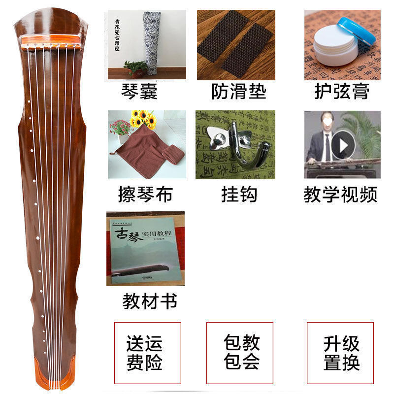 • Fuxi 스타일의 갈색 guqin + 선물 풀 세트