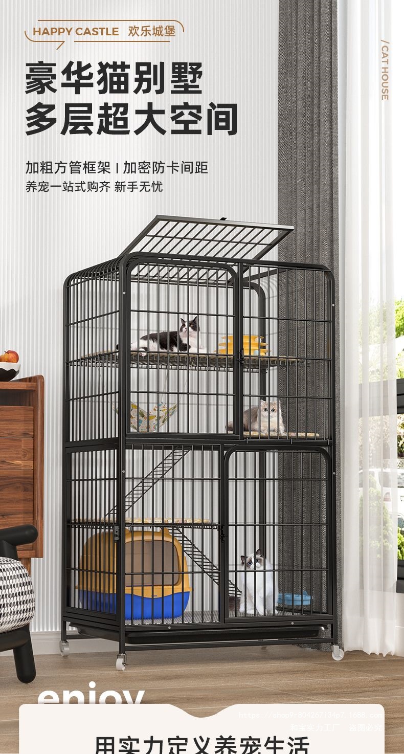 두껍고 강화된 2층 고양이 케이지, 가정용 실내 초대형 자유 공간, 초대형 고양이 빌라, 고양이 집, 고양이 케이지