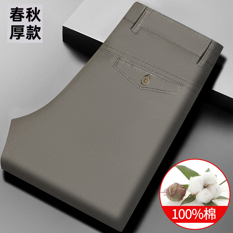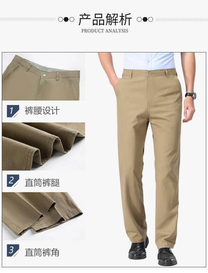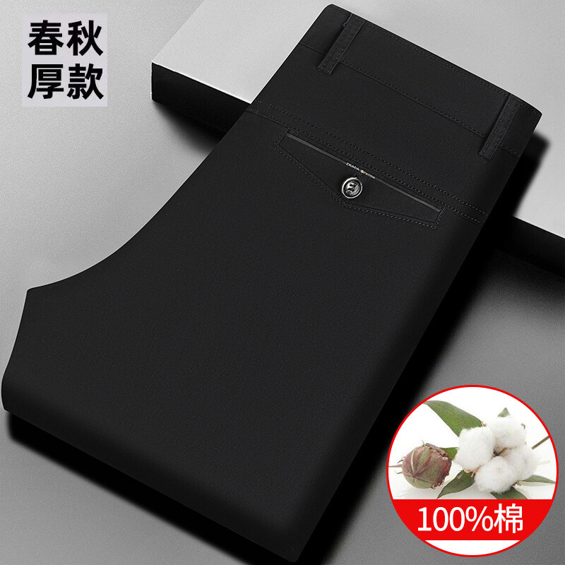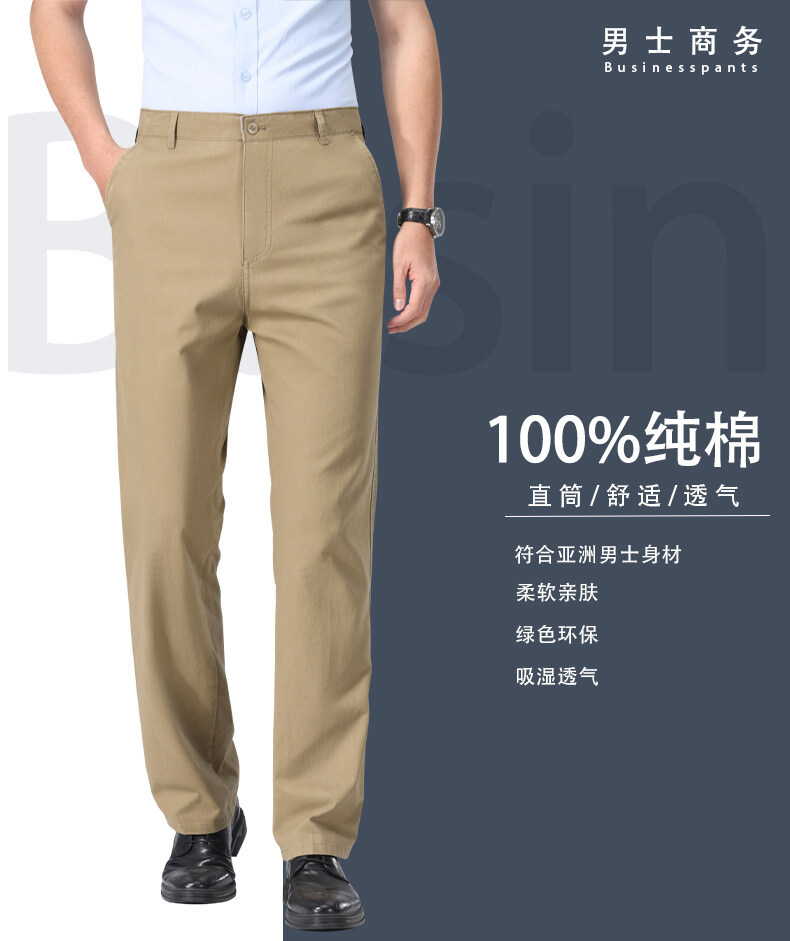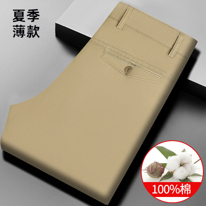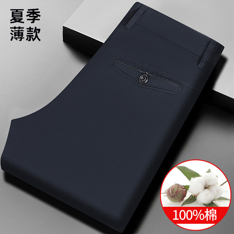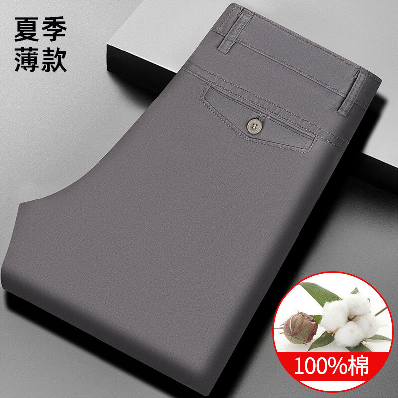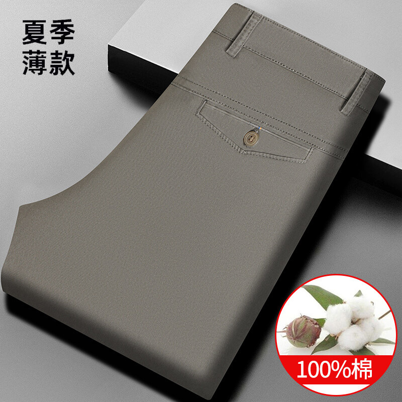 여름 신작 남성용 스트레이트 캐주얼 순면 루즈한 정장 바지, 남성용 무다림 주름 방지 비즈니스 바지스토어 가기