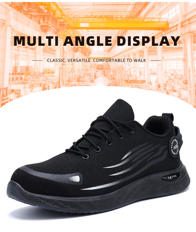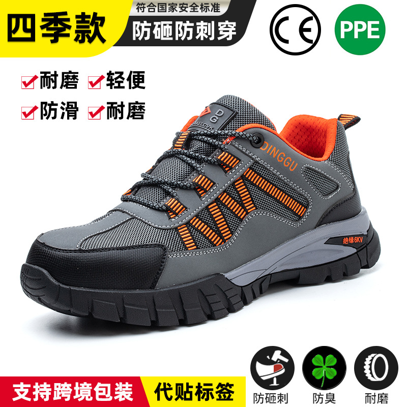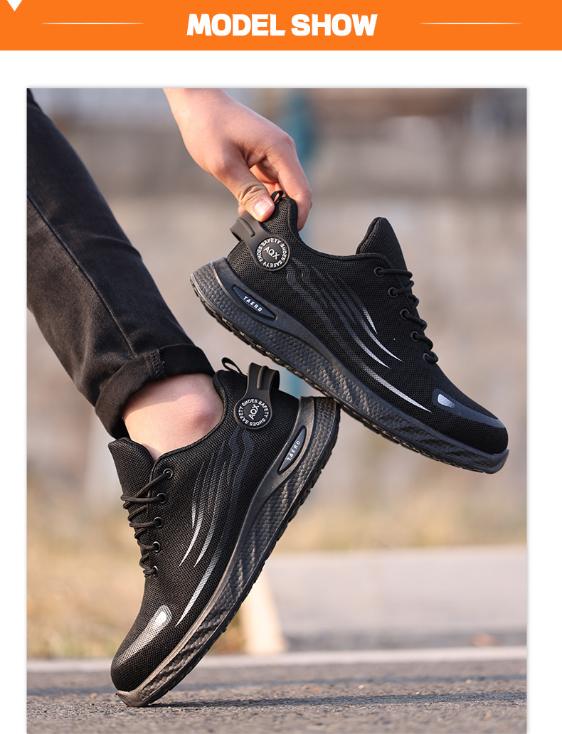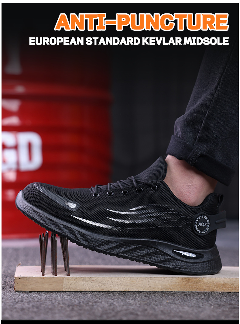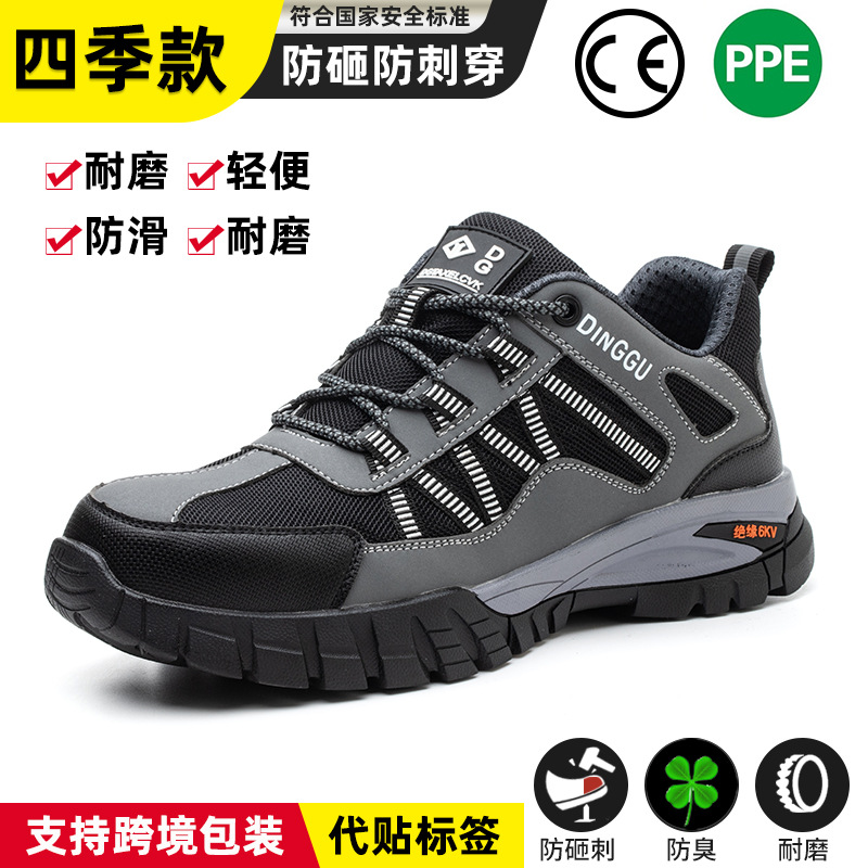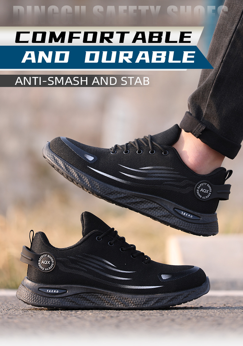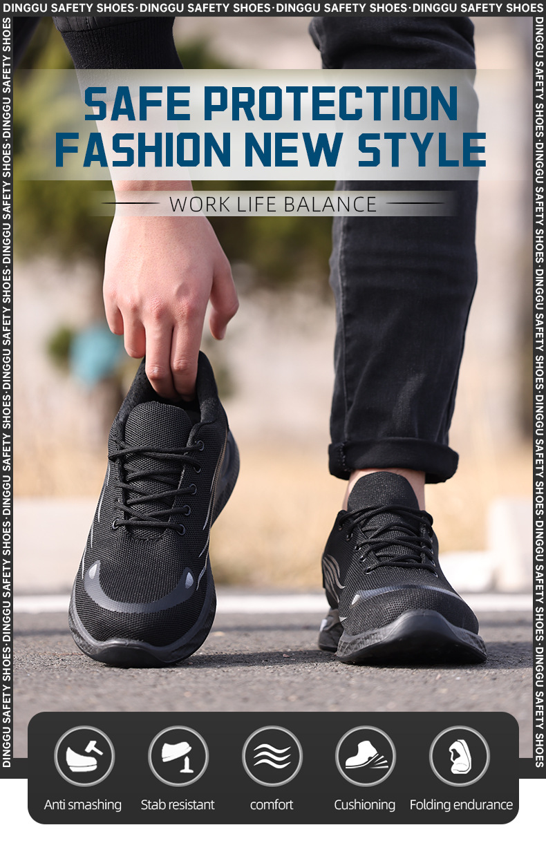 Dinggu 국경 간 안전화 제조업체, 편안하고 통기성이 뛰어나며 내마모성이 뛰어난 플라이 니트 노동 보호 신발, 스매싱 방지 및 펑크 방지 작업 신발스토어 가기