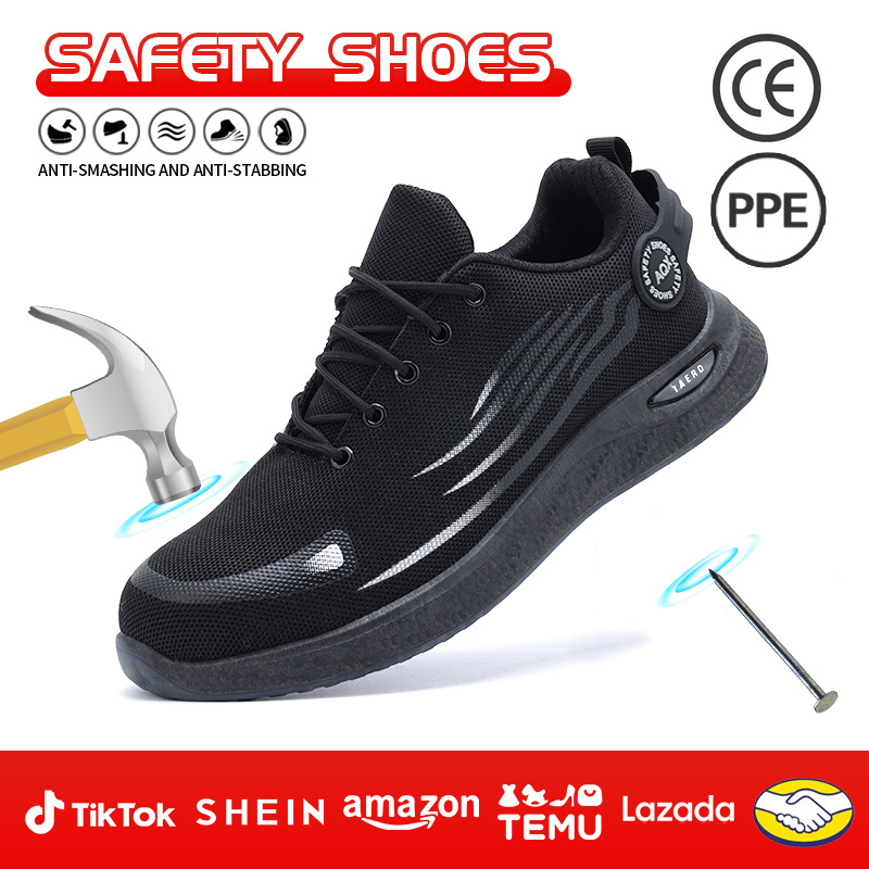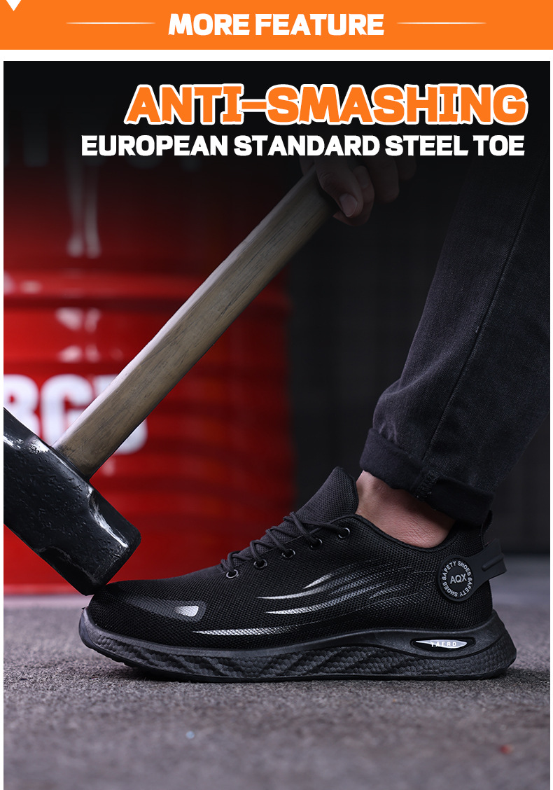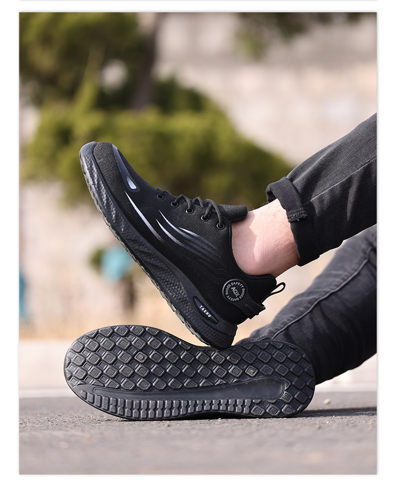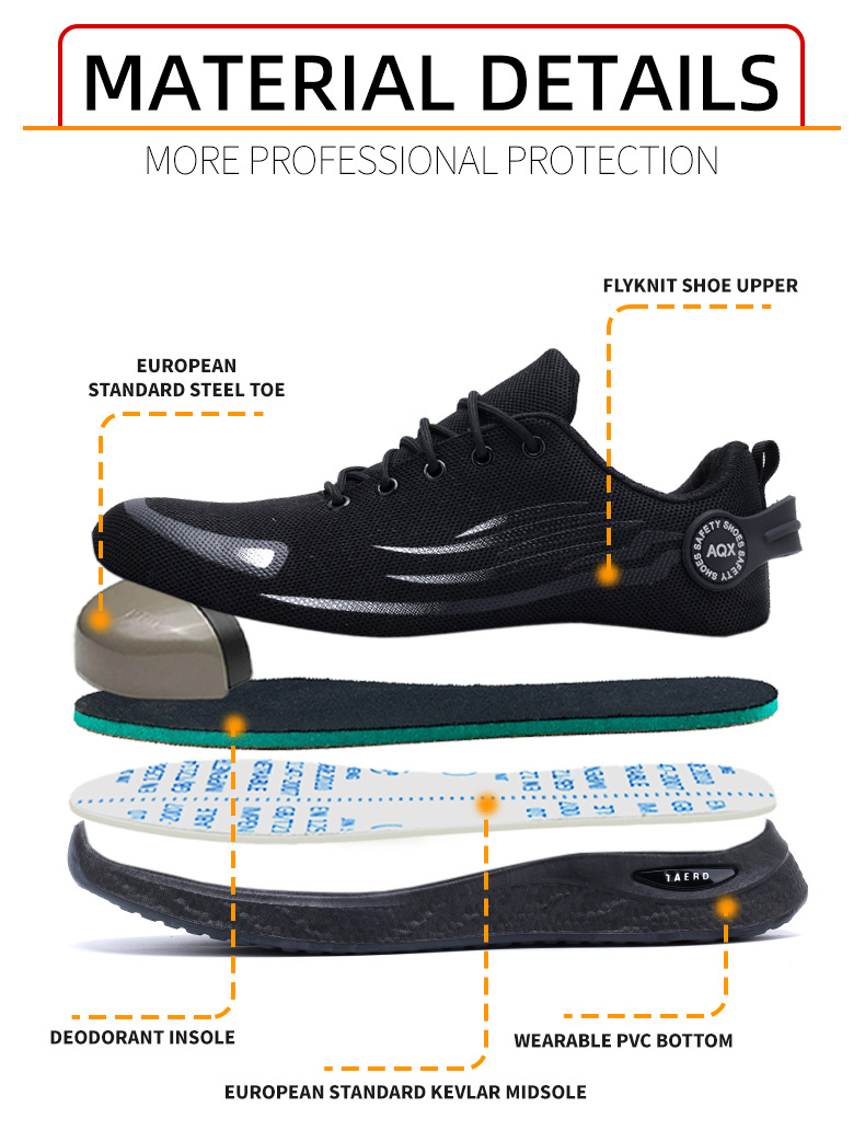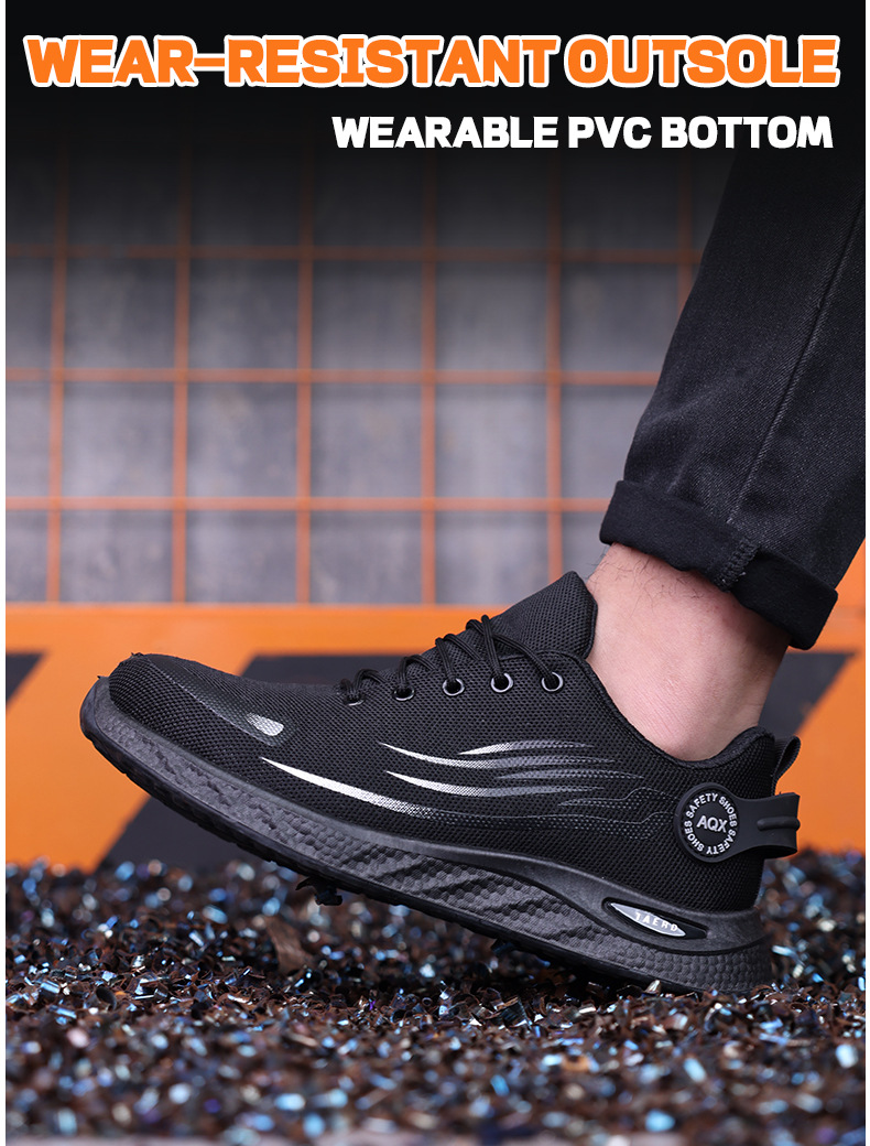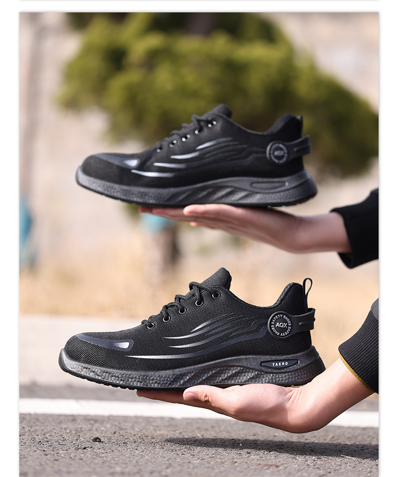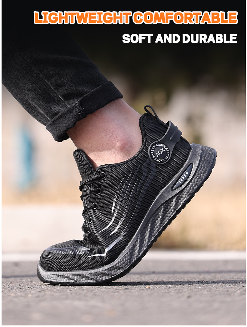 Dinggu 국경 간 안전화 제조업체, 편안하고 통기성이 뛰어나며 내마모성이 뛰어난 플라이 니트 노동 보호 신발, 스매싱 방지 및 펑크 방지 작업 신발스토어 가기