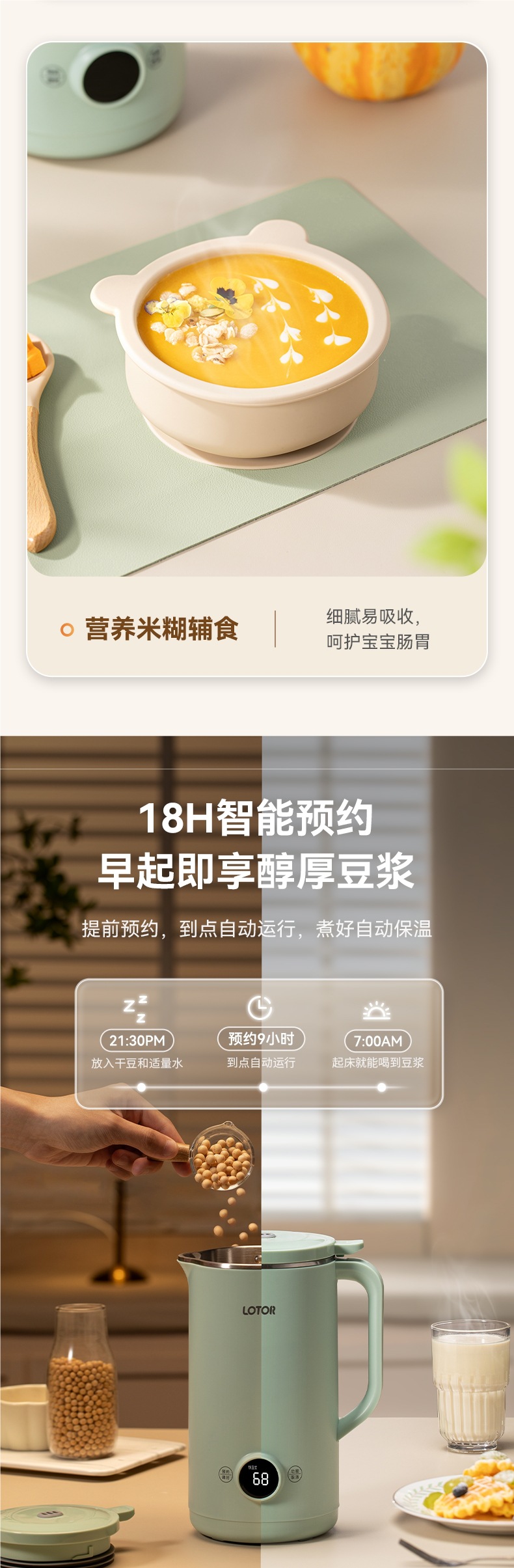 Lotor 벽 파괴 기계 가정용 두유 기계 완전 자동 저소음 소형 미니 주스 기계 쌀 시리얼 기계 1 ~ 2 명 3