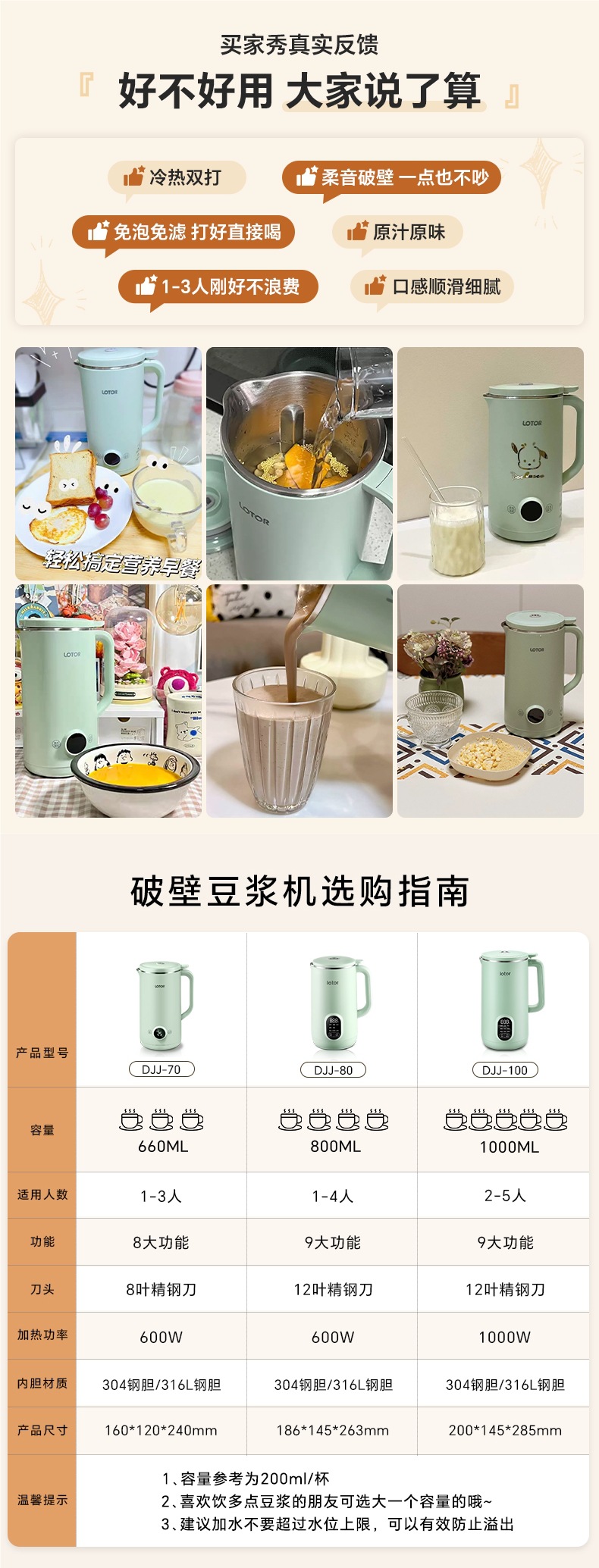 Lotor 벽 파괴 기계 가정용 두유 기계 완전 자동 저소음 소형 미니 주스 기계 쌀 시리얼 기계 1 ~ 2 명 3스토어 가기