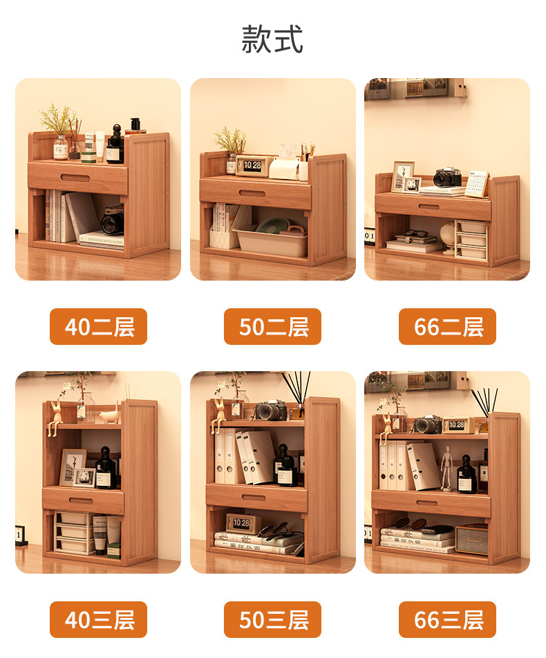 간단한 데스크탑 책장 기숙사 다층 스토리지 랙 홈 학생 책상 정리 서랍 스토리지 랙이있는 단단한 나무스토어 가기