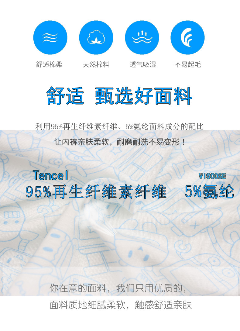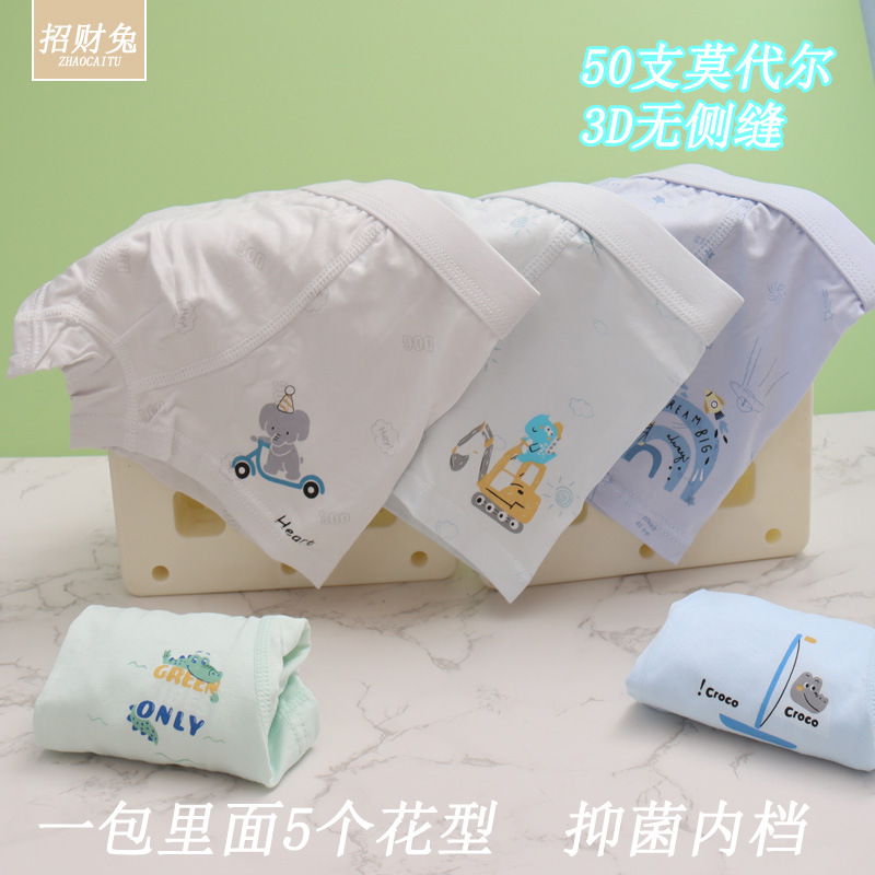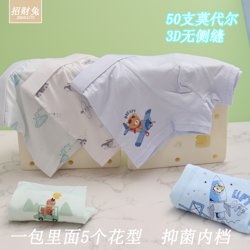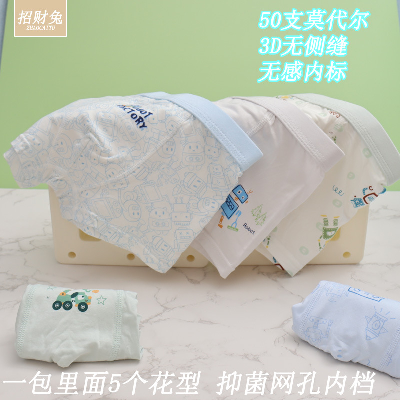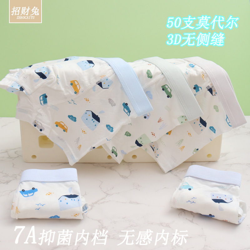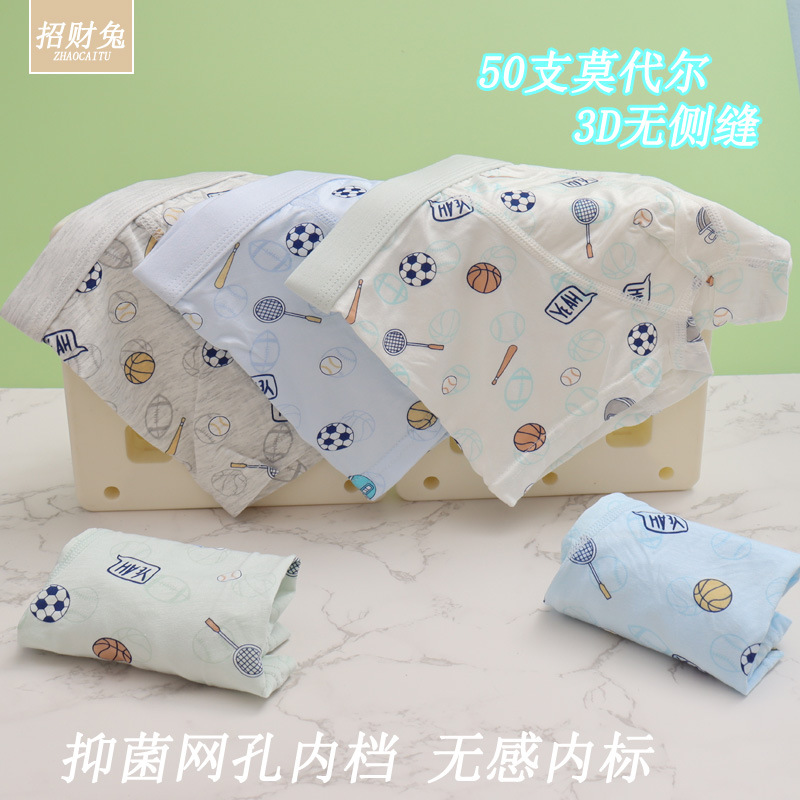 남아용 아동 속옷, 50수 모달면 3D 뼈없는 사각 학생용 속옷, 3-12세용 항균 속옷