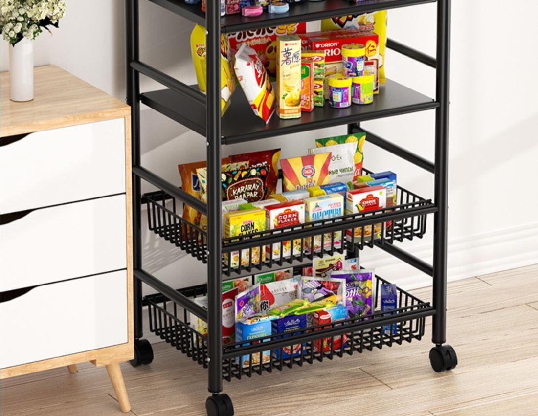 주방 랙 바닥에서 천장까지 다층 트롤리 다기능 야채 바구니 스낵 보관 보관 선반 캐비닛 안정적