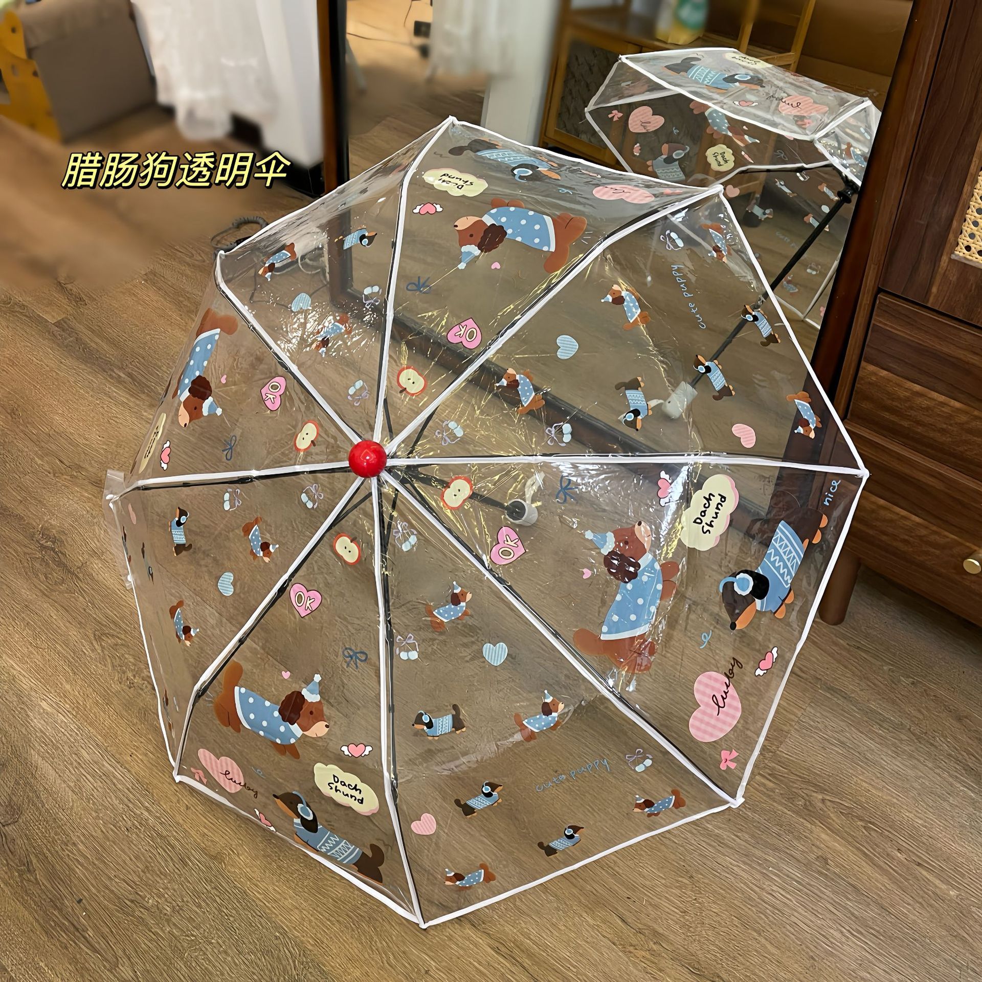 • 빨간 머리 코 닥스훈트 수동 투명 우산