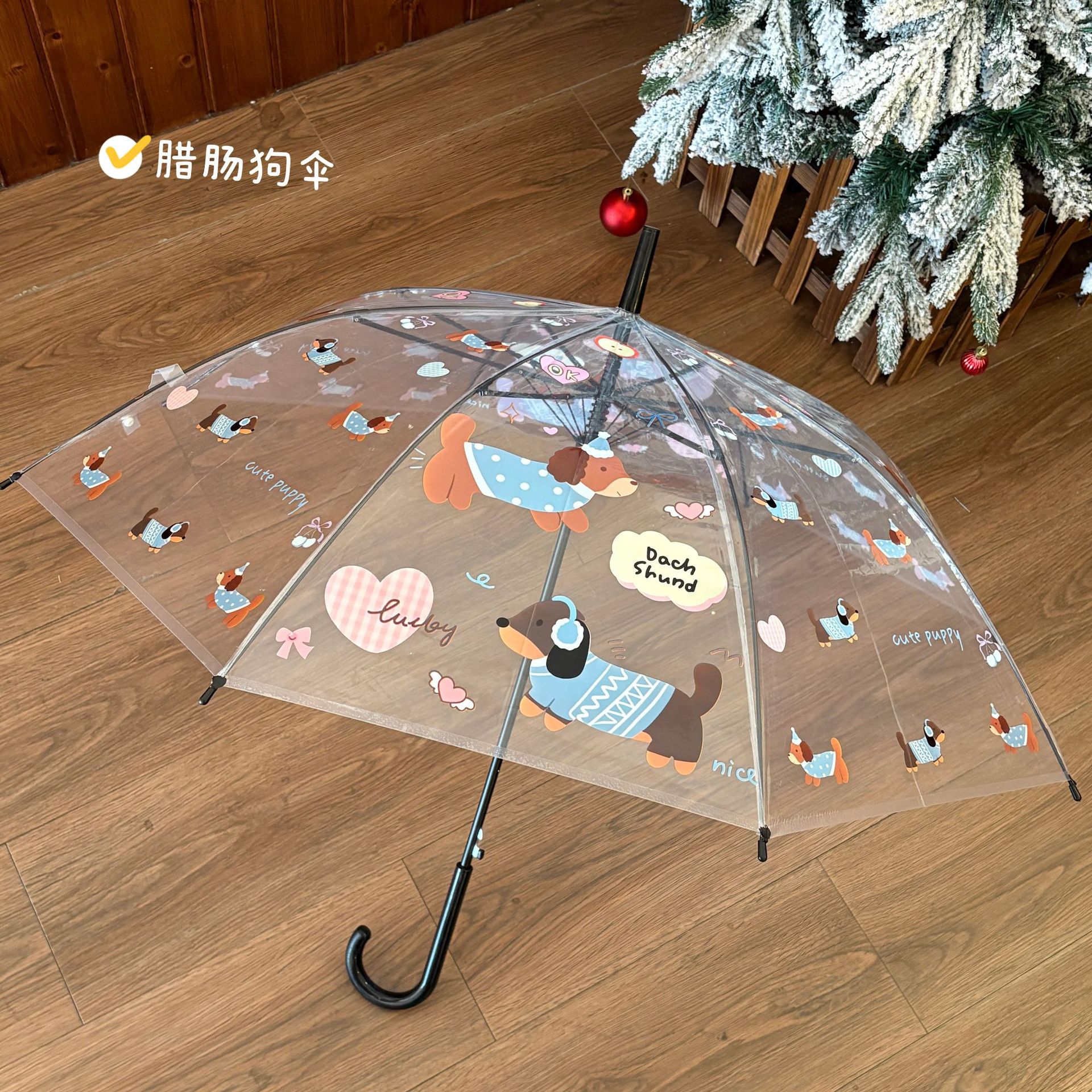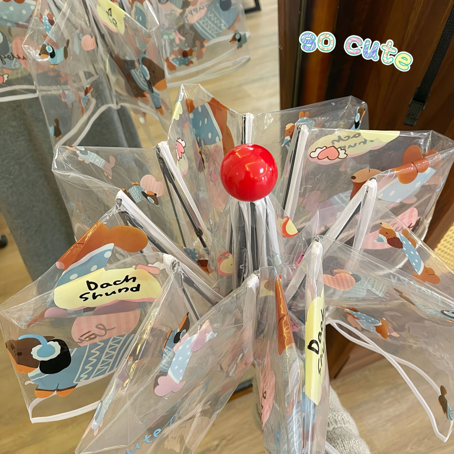 어린이 닥스훈트 투명 우산 유치원 아기 운반 두꺼운 긴 손잡이 우산 귀여운 만화 패션 스타일스토어 가기