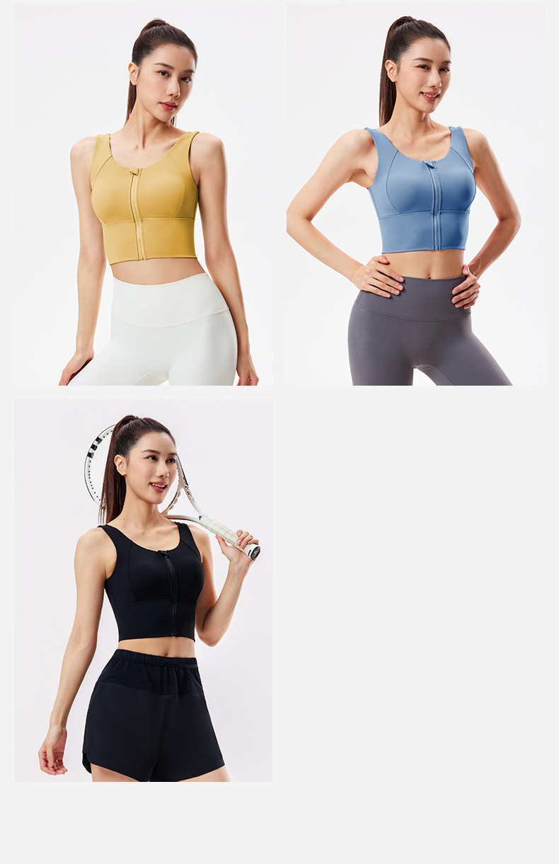 여성을위한 전면 지퍼 스포츠 브래지어 가을 충격 방지 처짐 요가 속옷 전문 훈련 러닝 피트니스 조끼 브래지어