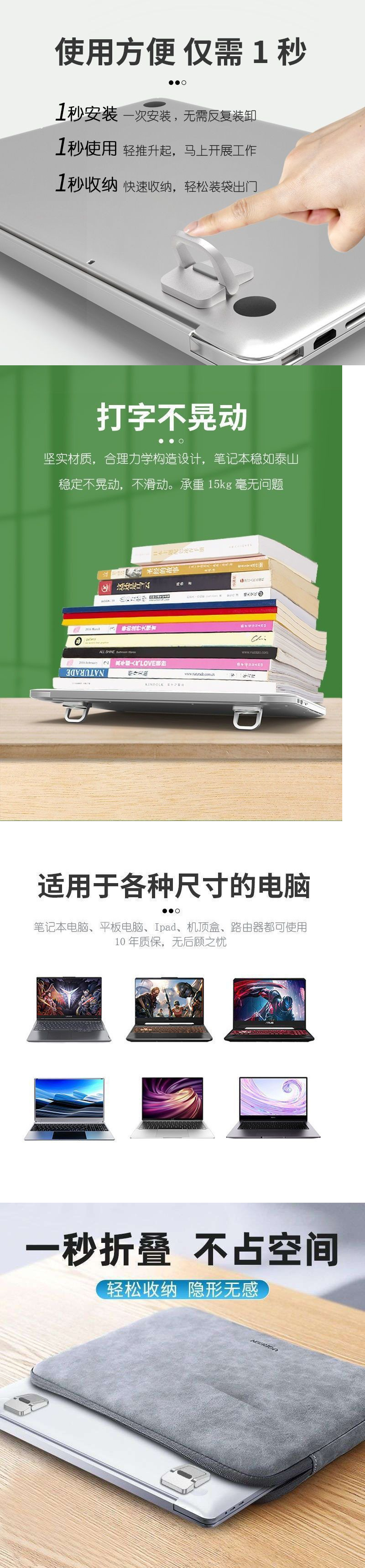 알루미늄 합금 노트북 스탠드 접착식 패딩 브래킷 컴퓨터 스탠드 냉각 초박형 스탠드 접이식스토어 가기