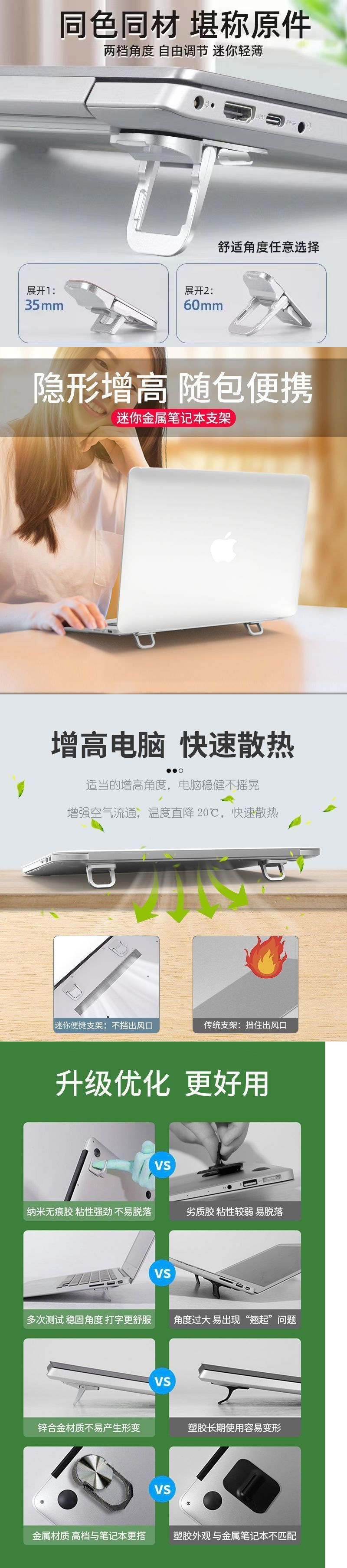 알루미늄 합금 노트북 스탠드 접착식 패딩 브래킷 컴퓨터 스탠드 냉각 초박형 스탠드 접이식