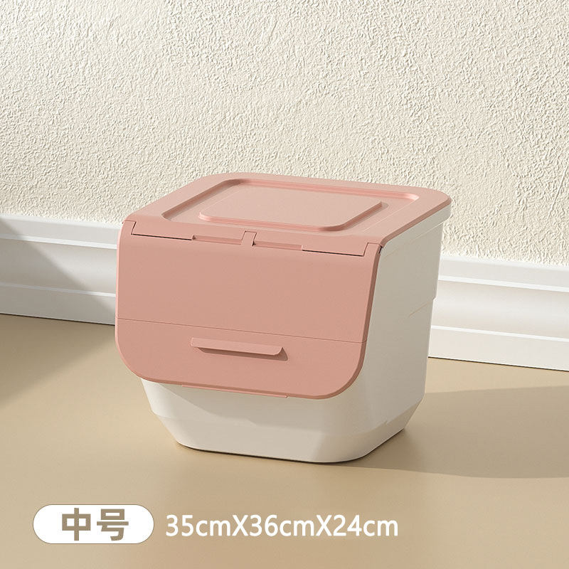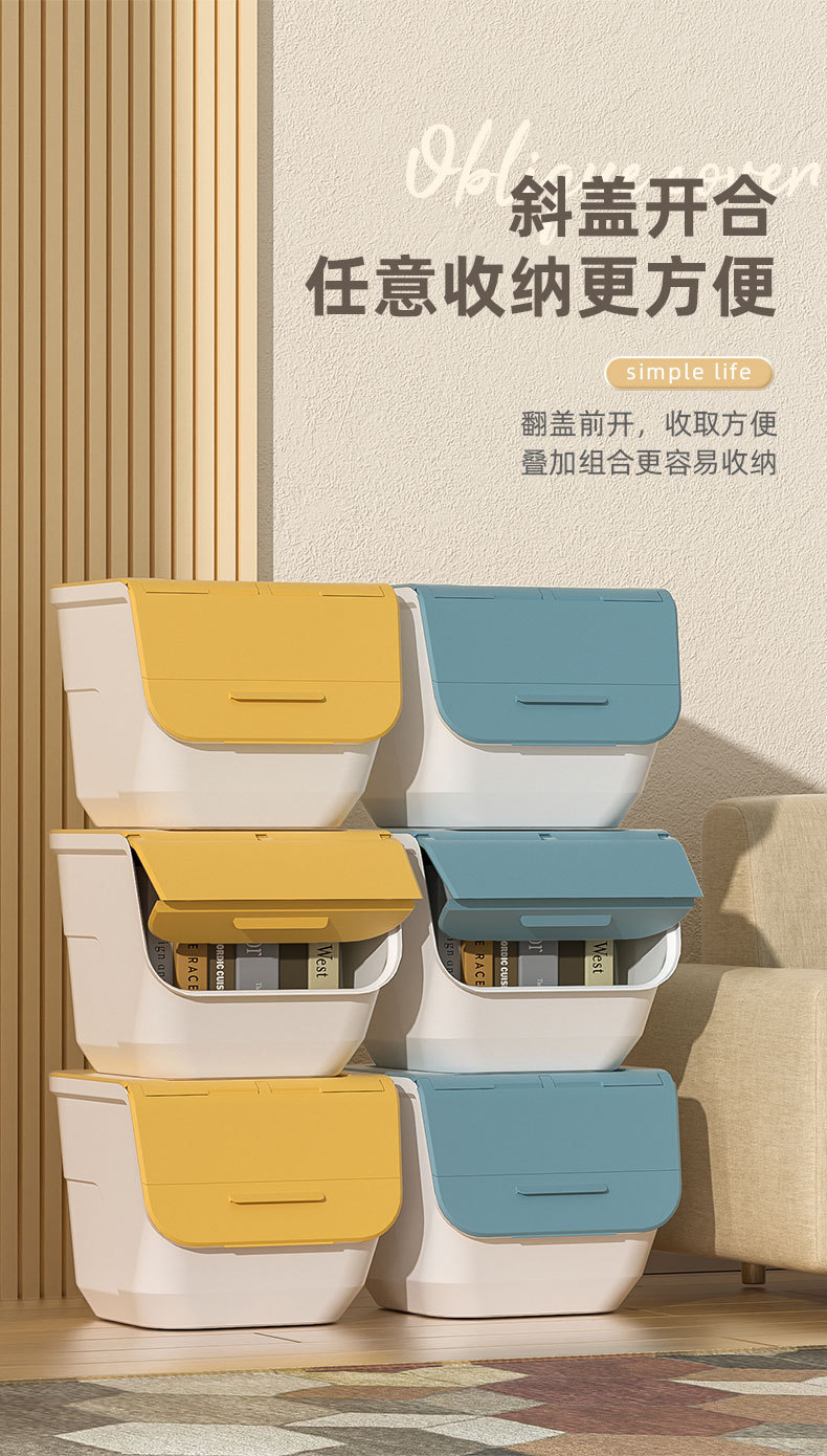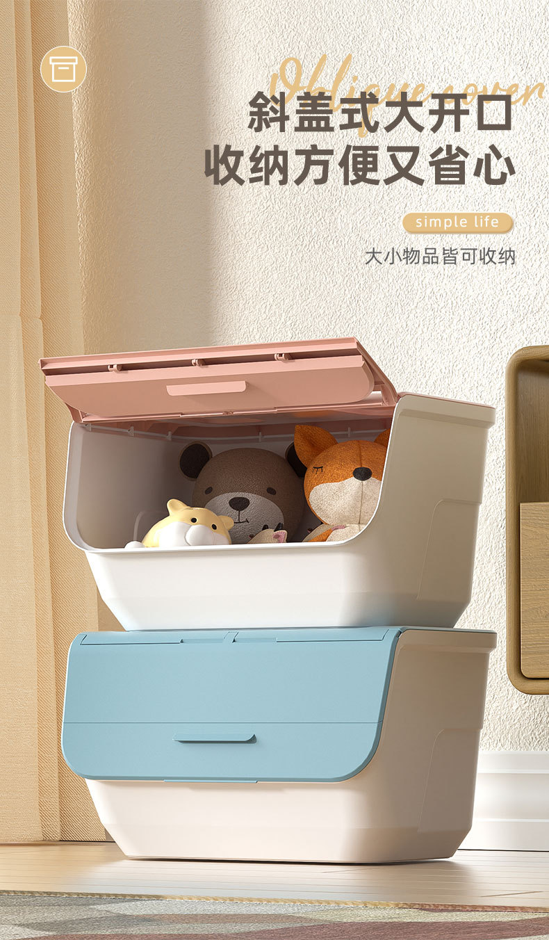 可叠加河马口玩具收纳箱客厅前翻盖斜盖式换季儿童衣物零食收纳箱