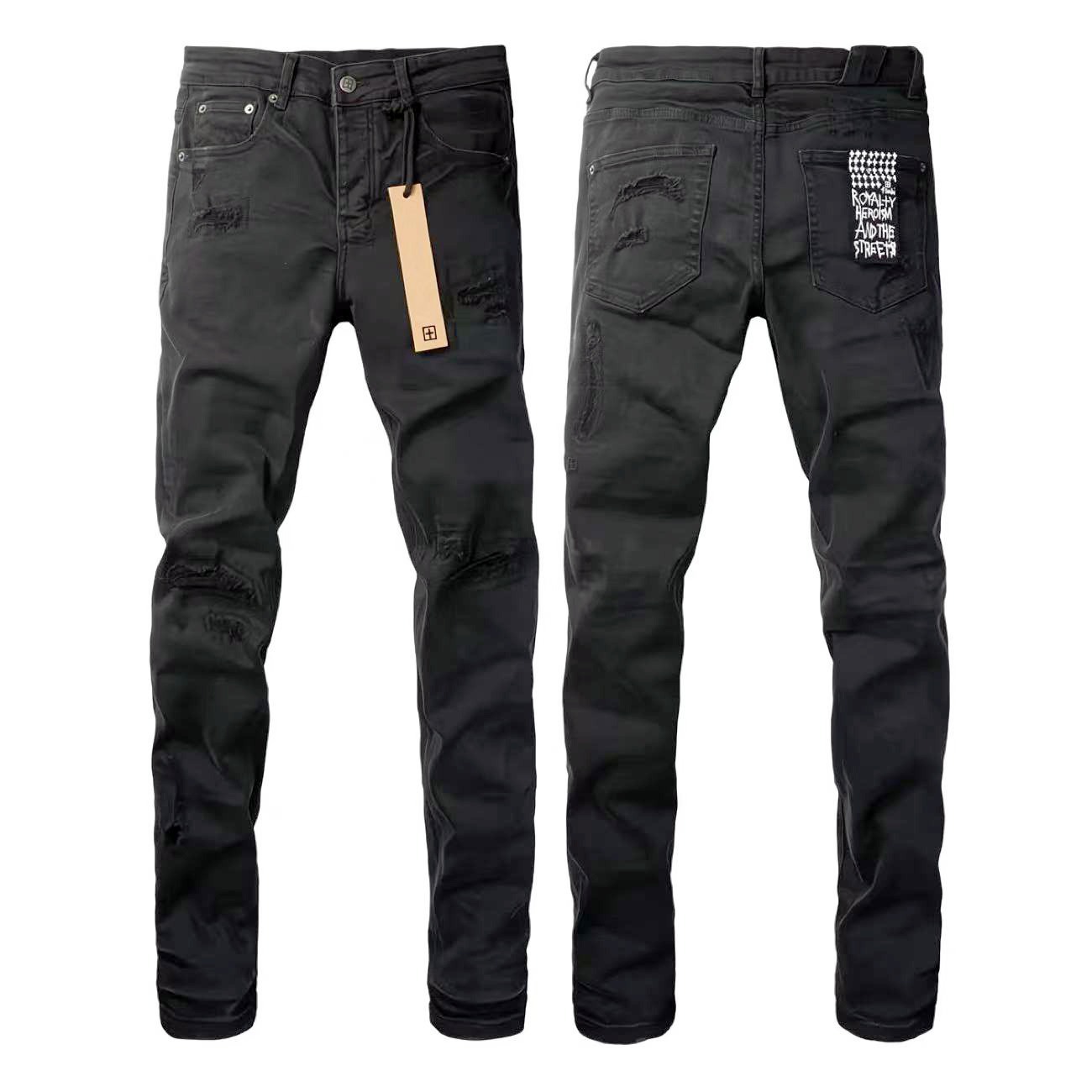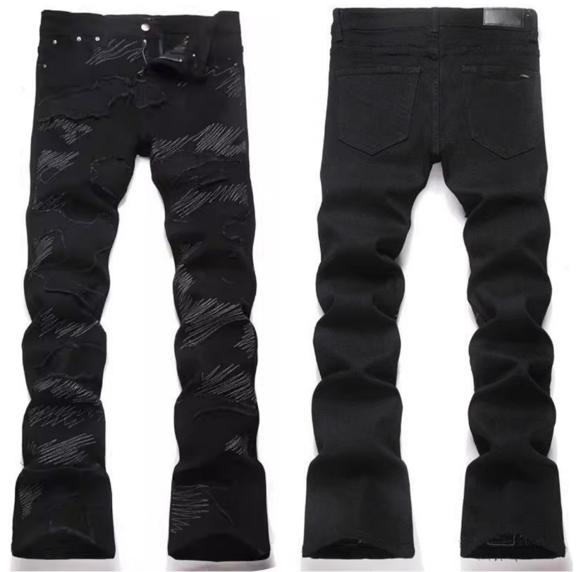 트렌디한 맞춤형 캐주얼 스타일의 남성용 스몰 스트레이트 패치 청바지, 슬림핏 자수 청바지, 남성용 찢어진 트렌디 패치 코튼 청바지스토어 가기
