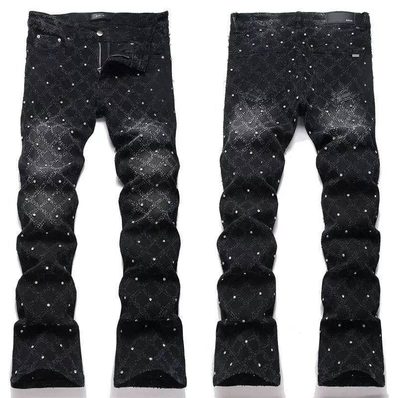 트렌디한 맞춤형 캐주얼 스타일의 남성용 스몰 스트레이트 패치 청바지, 슬림핏 자수 청바지, 남성용 찢어진 트렌디 패치 코튼 청바지
