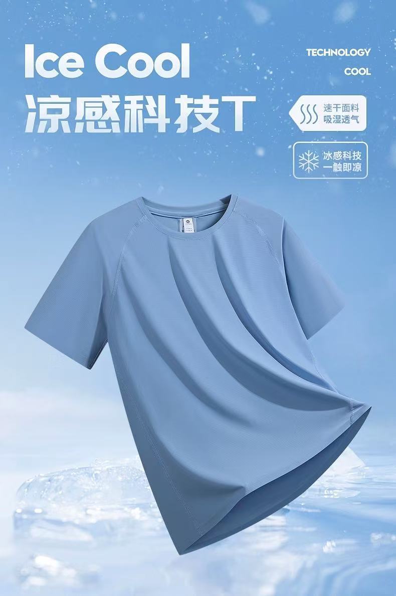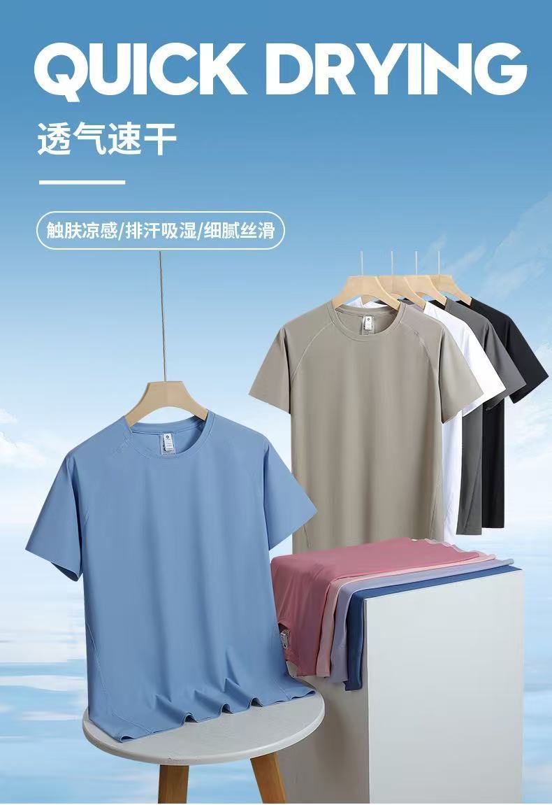 하이 엔드 라이트 럭셔리 야외 시원한 속건성 반팔 티셔츠 남성용 2025 여름 얼음 실크 반팔 솔리드 컬러 스포츠 탑스토어 가기