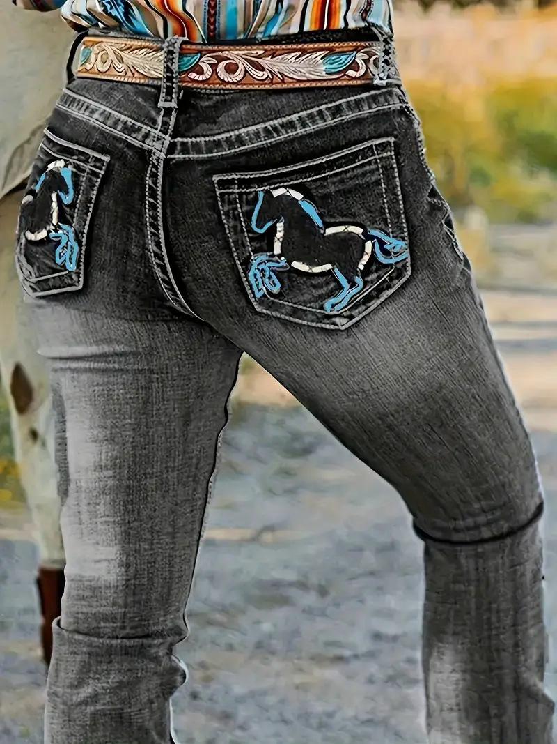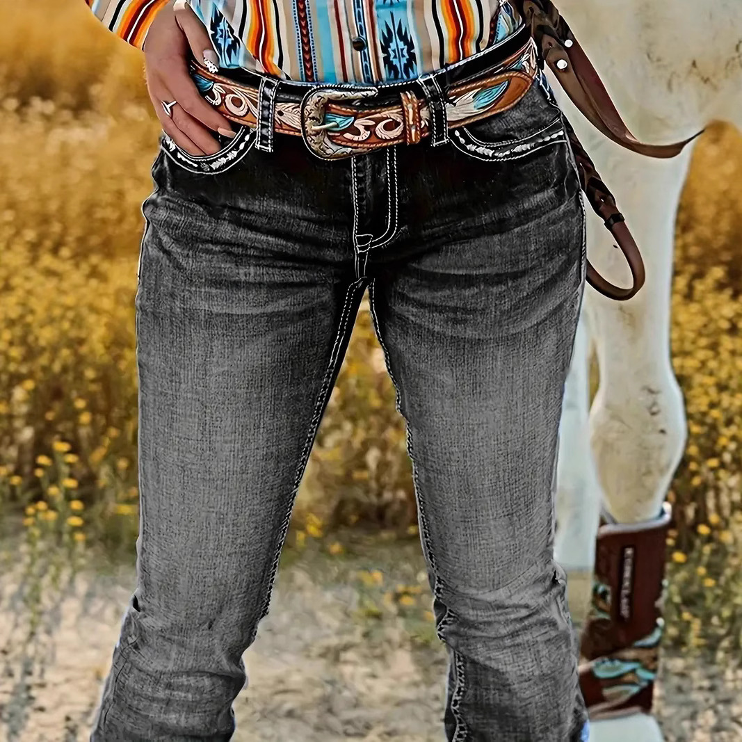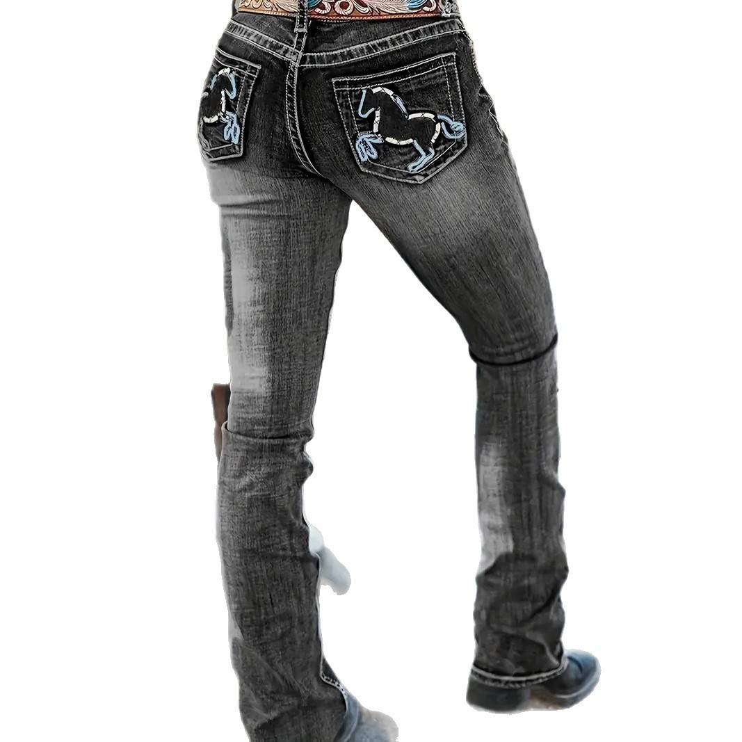 국경을 넘나드는 유럽과 미국의 아마존 베스트셀러 스트레치 여성용 자수 하이웨이스트 워싱 데님 스트레이트 팬츠입니다. 。