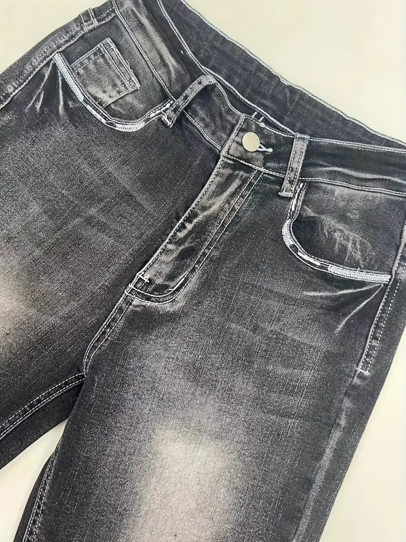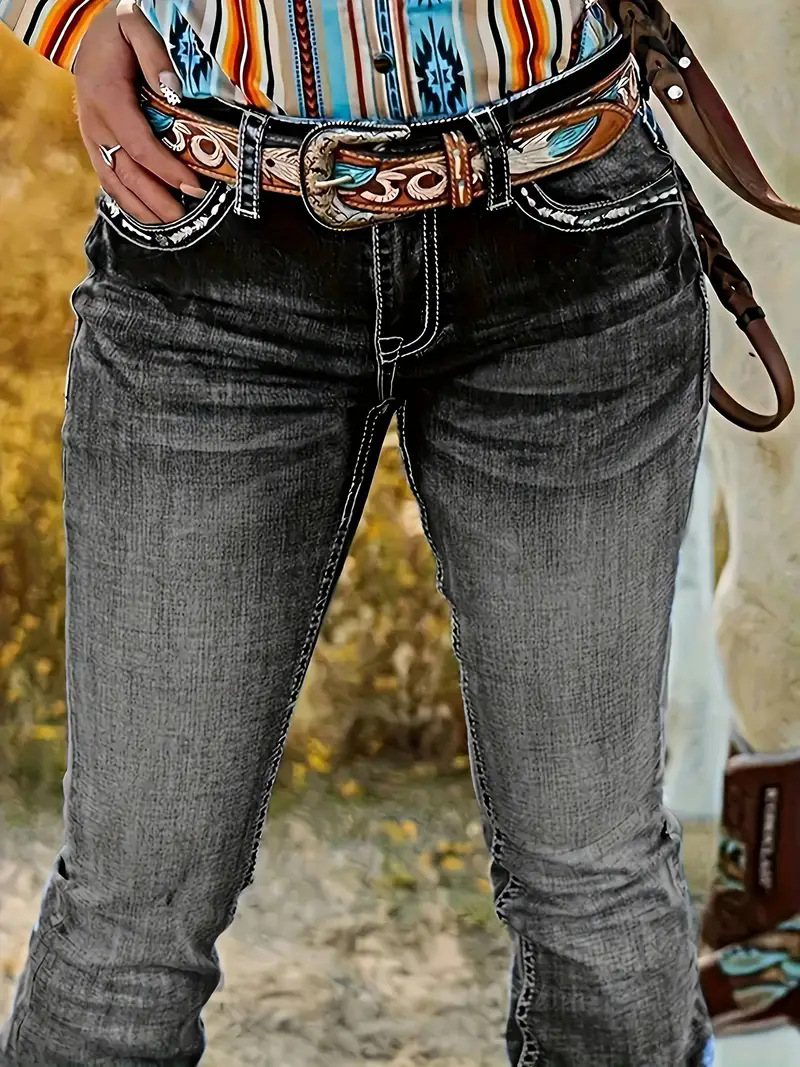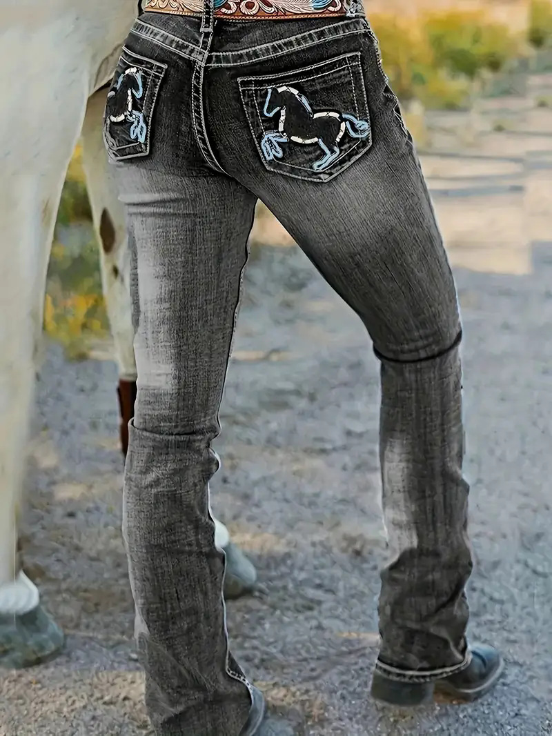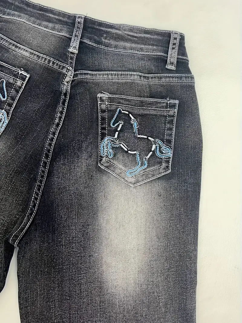 국경을 넘나드는 유럽과 미국의 아마존 베스트셀러 스트레치 여성용 자수 하이웨이스트 워싱 데님 스트레이트 팬츠입니다. 。스토어 가기