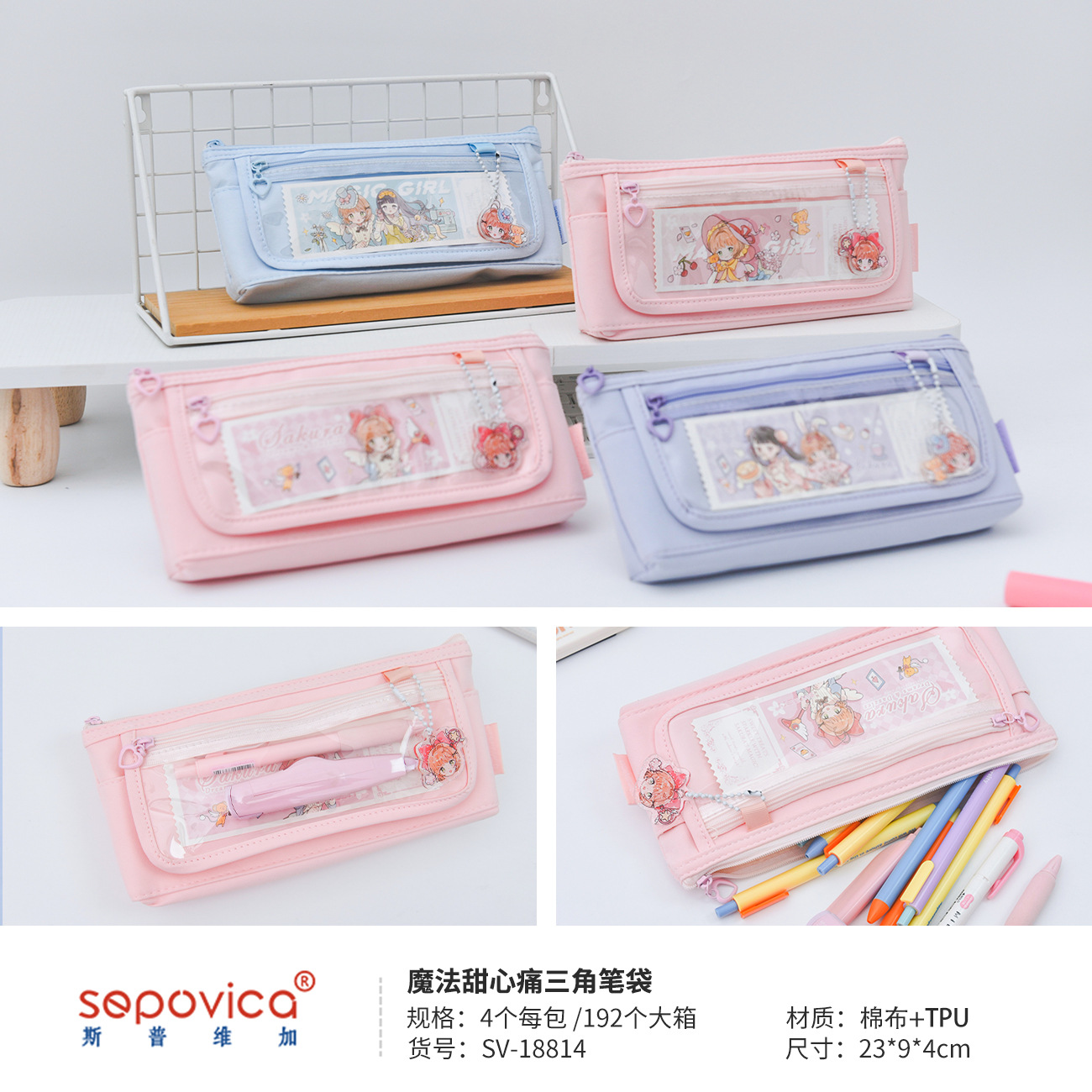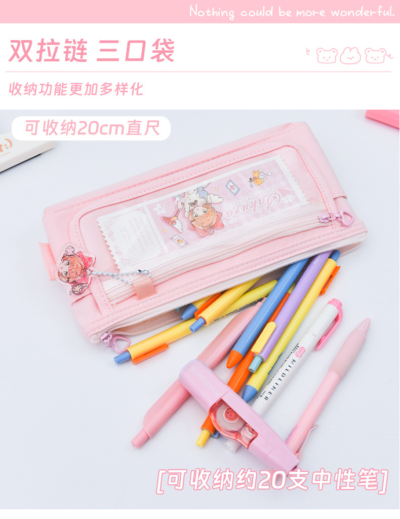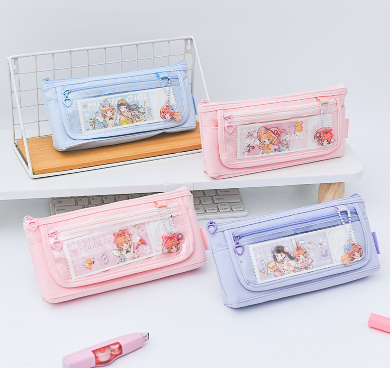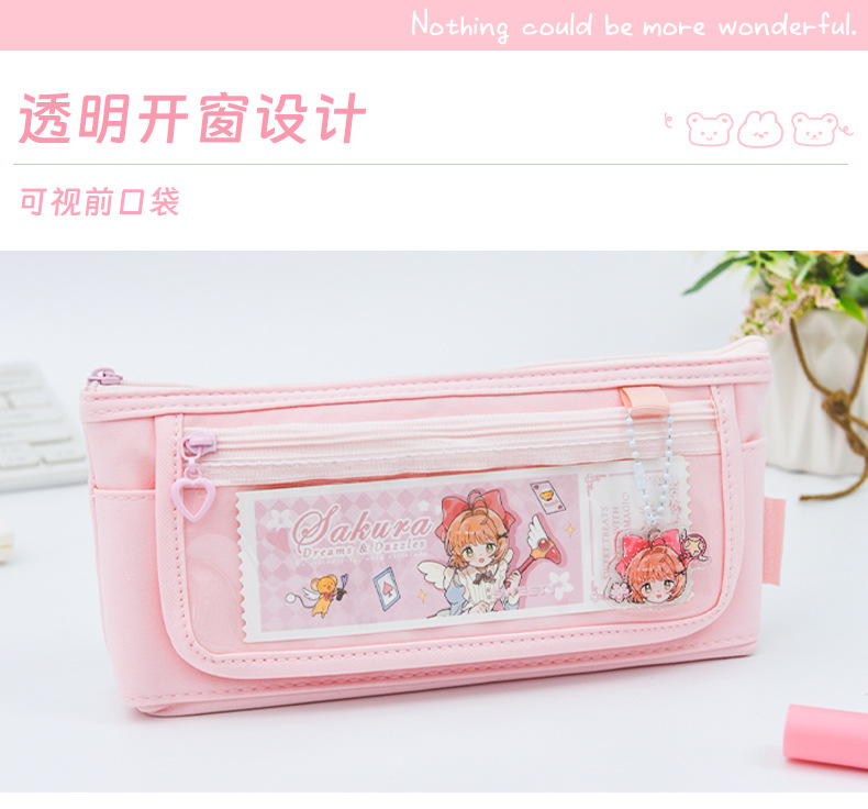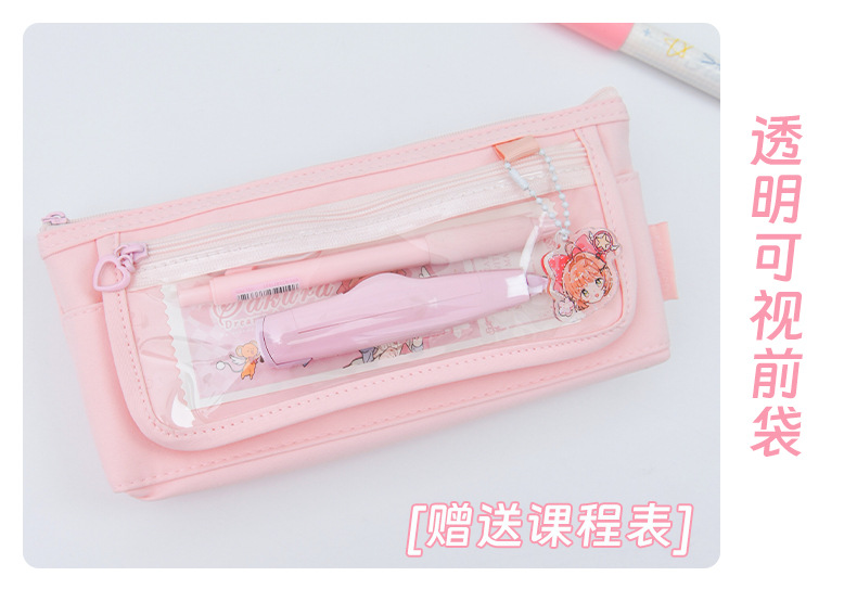 소녀 귀여운 만화 투명 앞창 통증 연필 가방 ins 스타일 고가치 초등 및 중등 학생 보관 가방 연필 상자