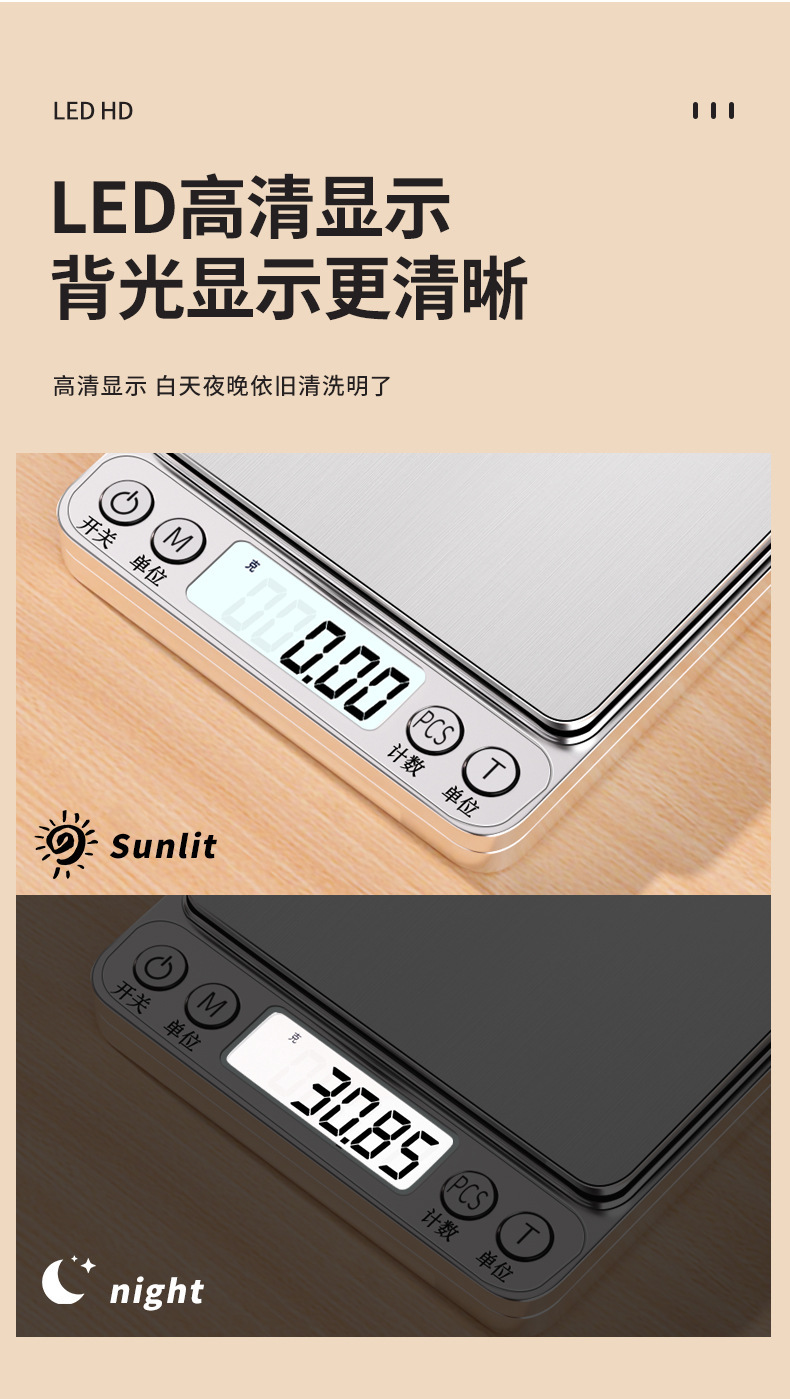 • 충전식 백라이트/2kg/0.1g에는 듀얼 트레이 + 충전 케이블 + 8가지 멋진 선물이 함께 제공됩니다..