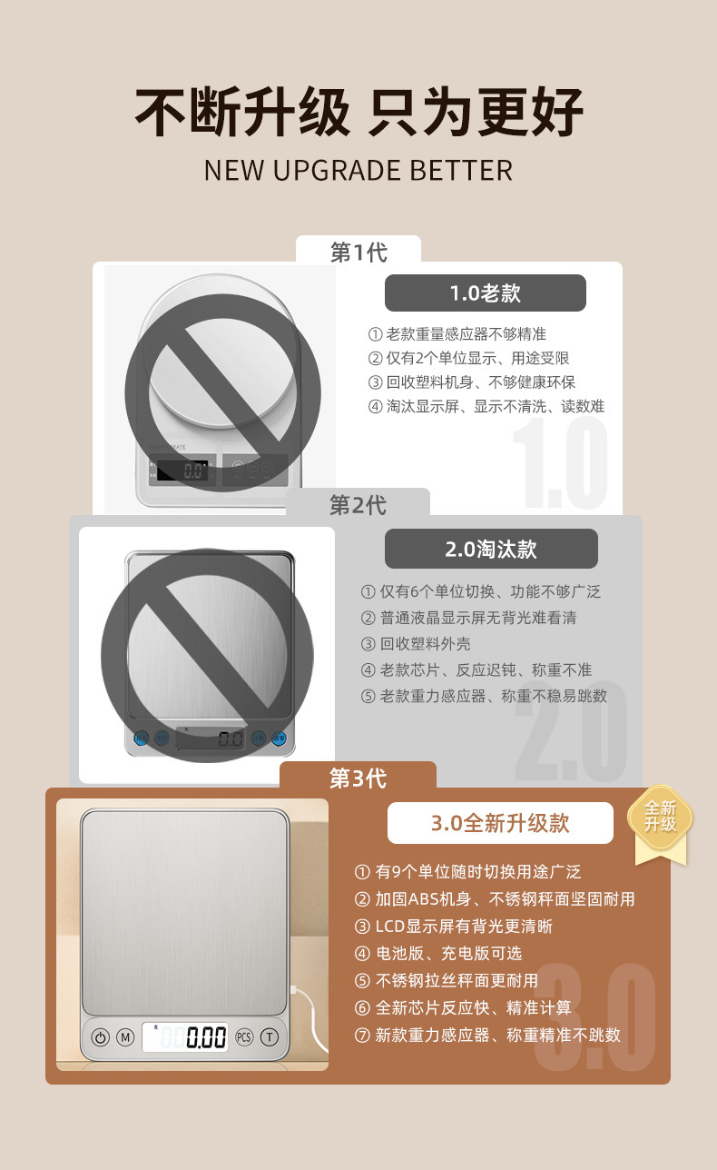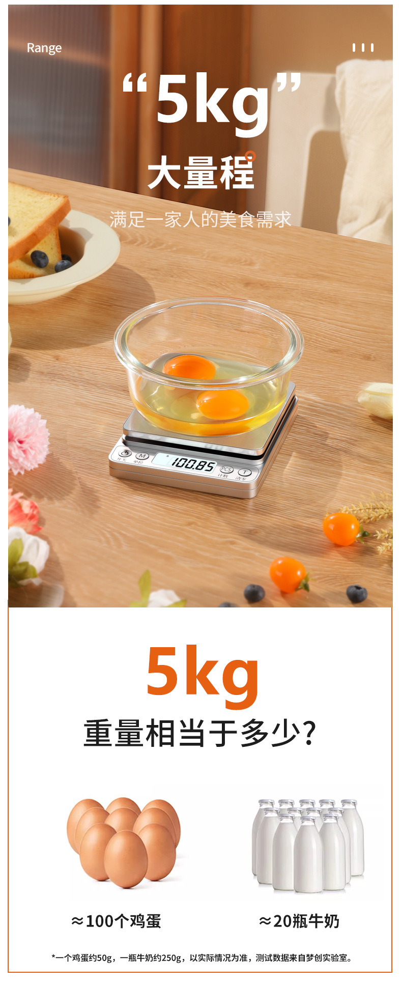 • 충전식 삼용모델 3kg/0.1g 무게 + 눈금볼 + 이중트레이 + 계량컵 + 방수스티커 9개