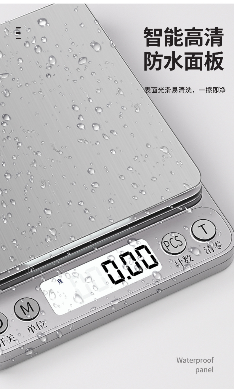 • [업그레이드 및 확대] 충전식 3kg/0.1g 트레이 + 계량컵 + 방수스티커 + USB 데이터