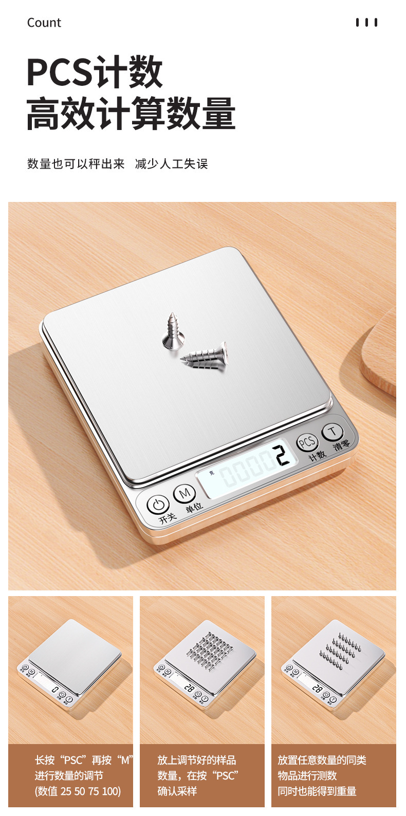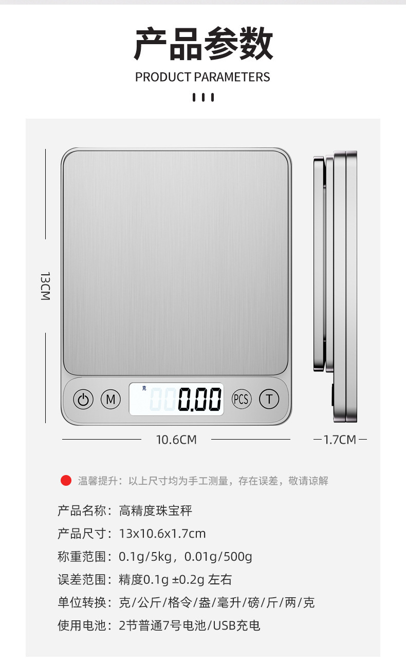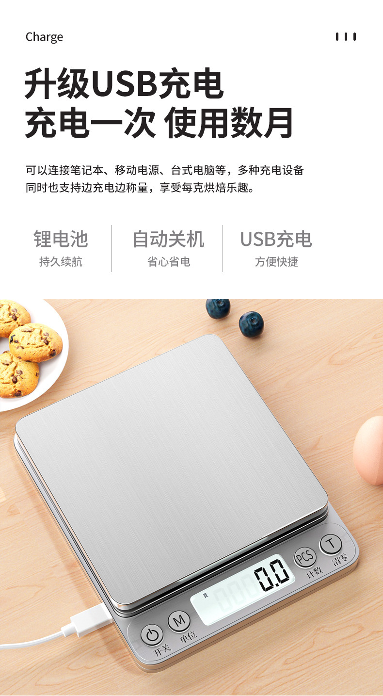 • 매장 관리자 추천 - 충전식 백라이트/3kg/0.1g에는 듀얼 트레이 + 충전 케이블이 함께 제공됩니다.