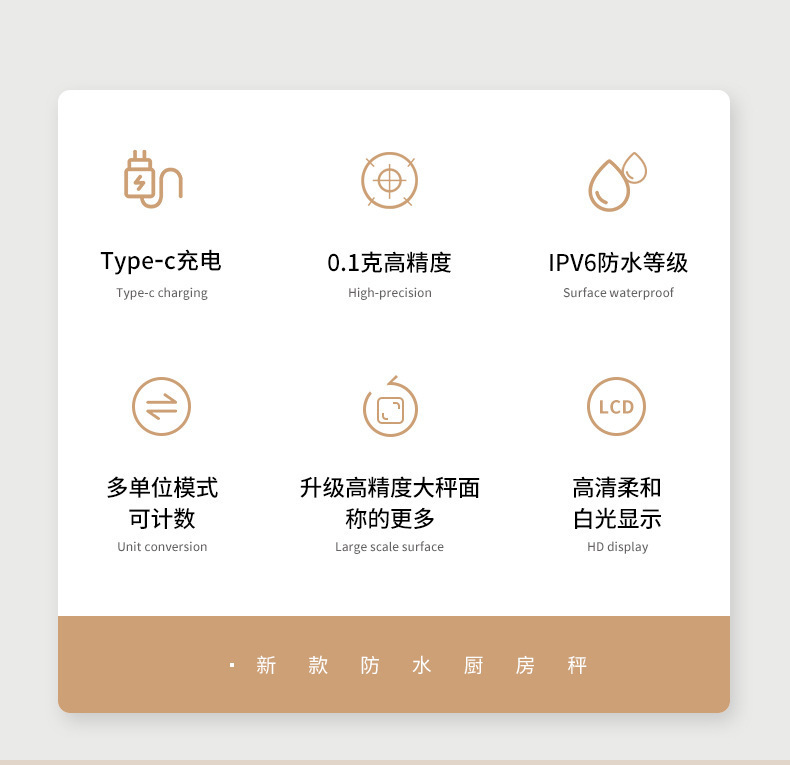• 충전식 삼용모델 2kg/0.1g 무게 + 눈금그릇 + 이중트레이 + 계량컵 + 방수스티커 9개
