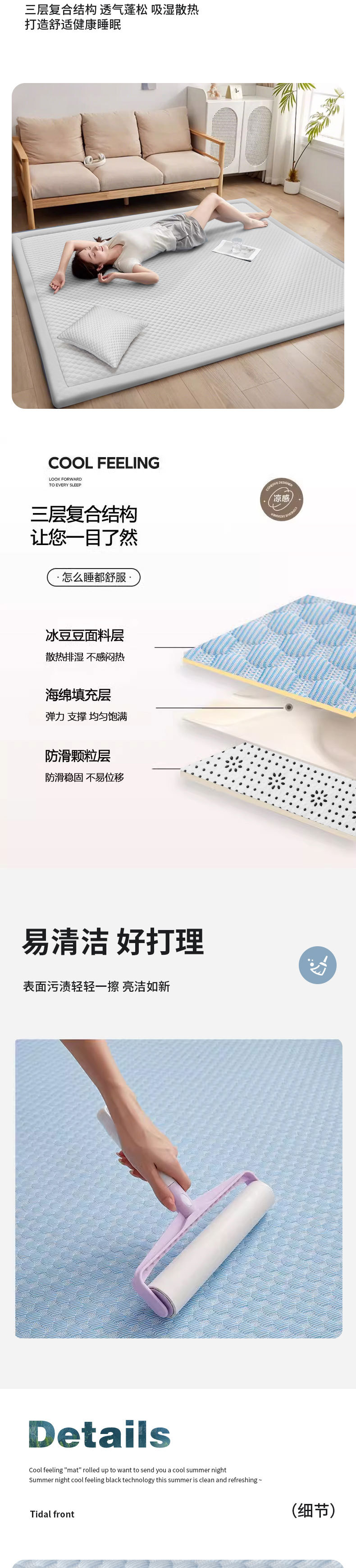 시원한 콩매트 여름용 매트리스 두꺼운 다다미 어린이용 크롤링 매트 미끄럼 방지 거실 바닥 매트