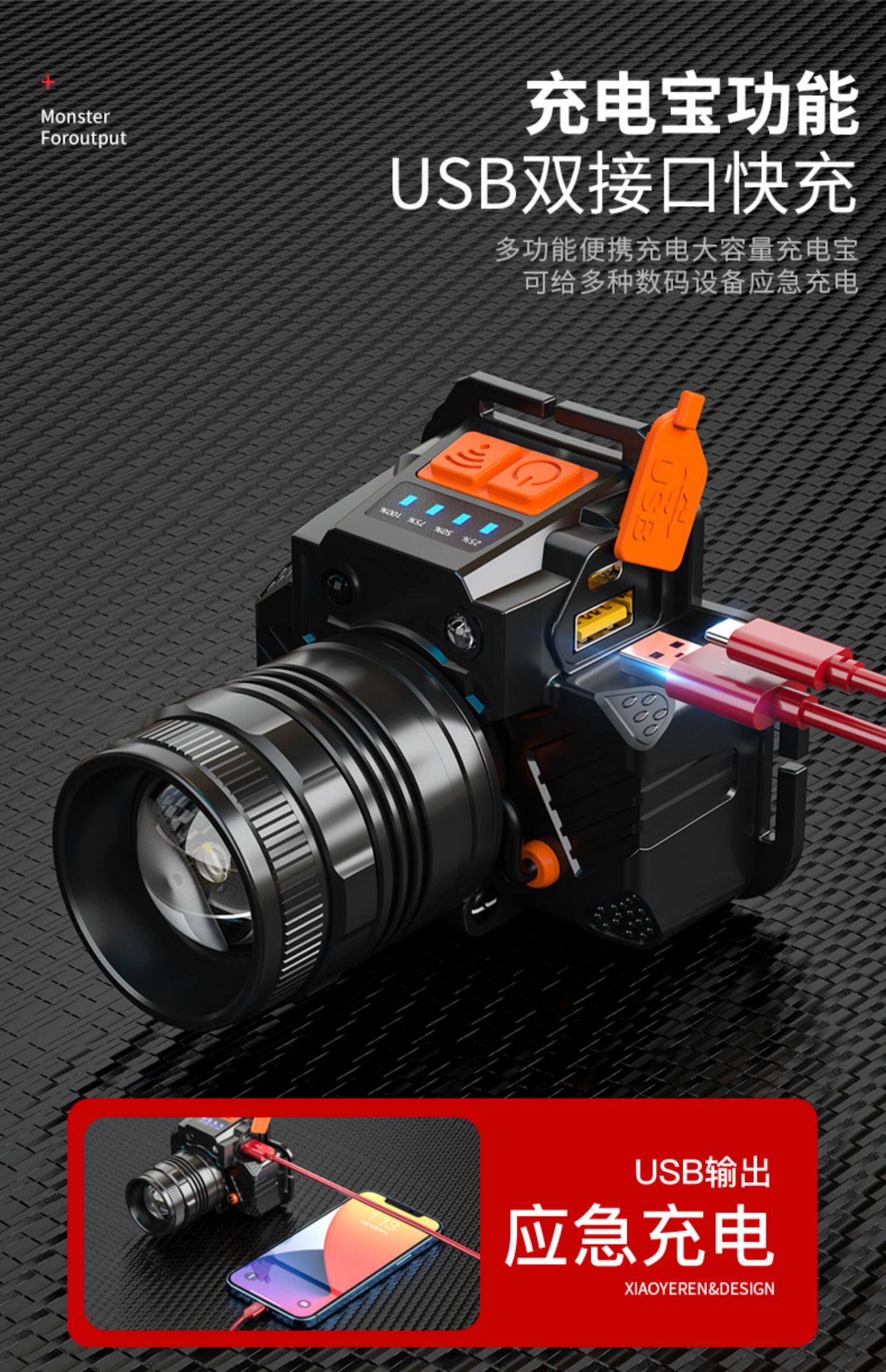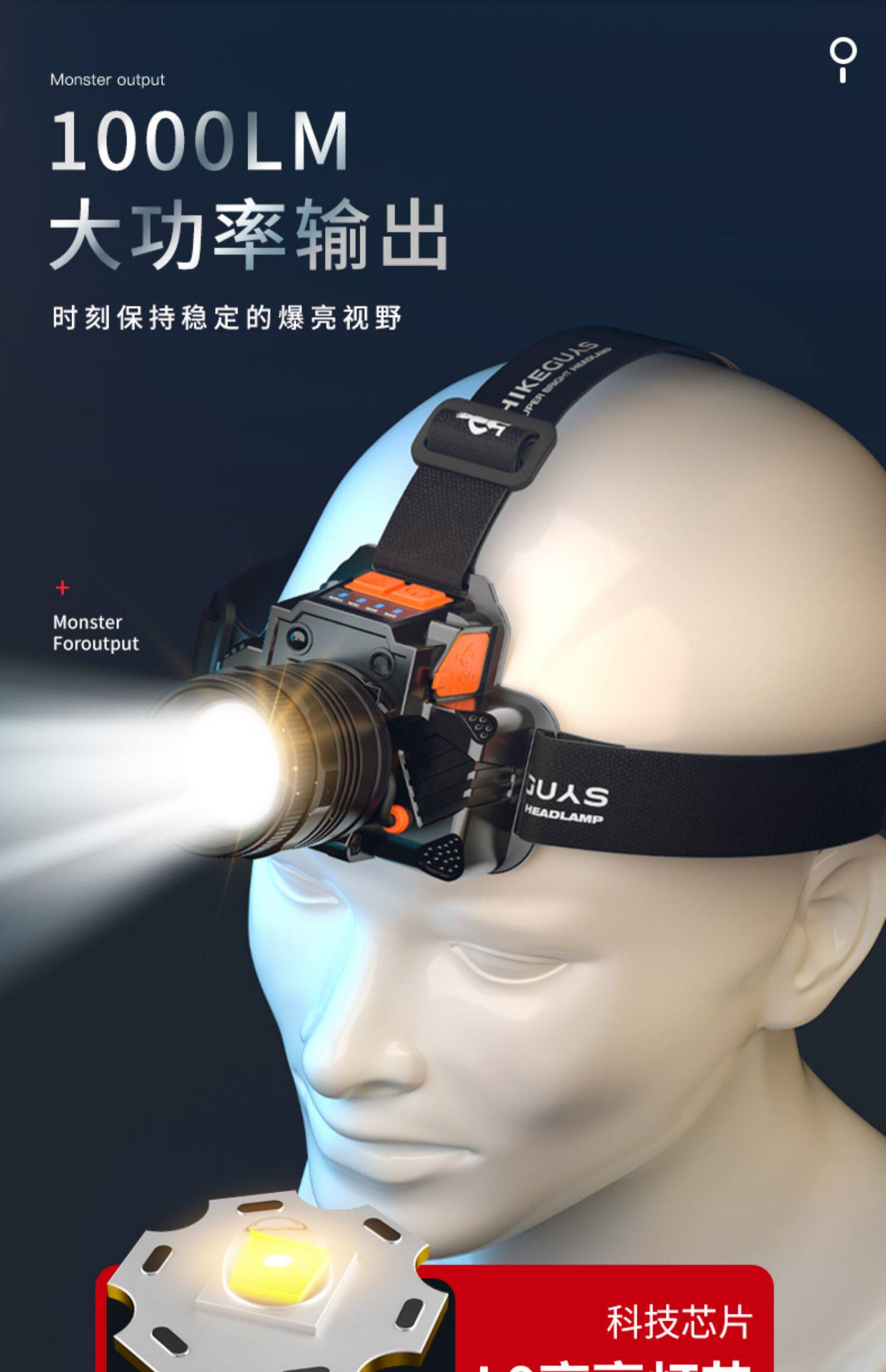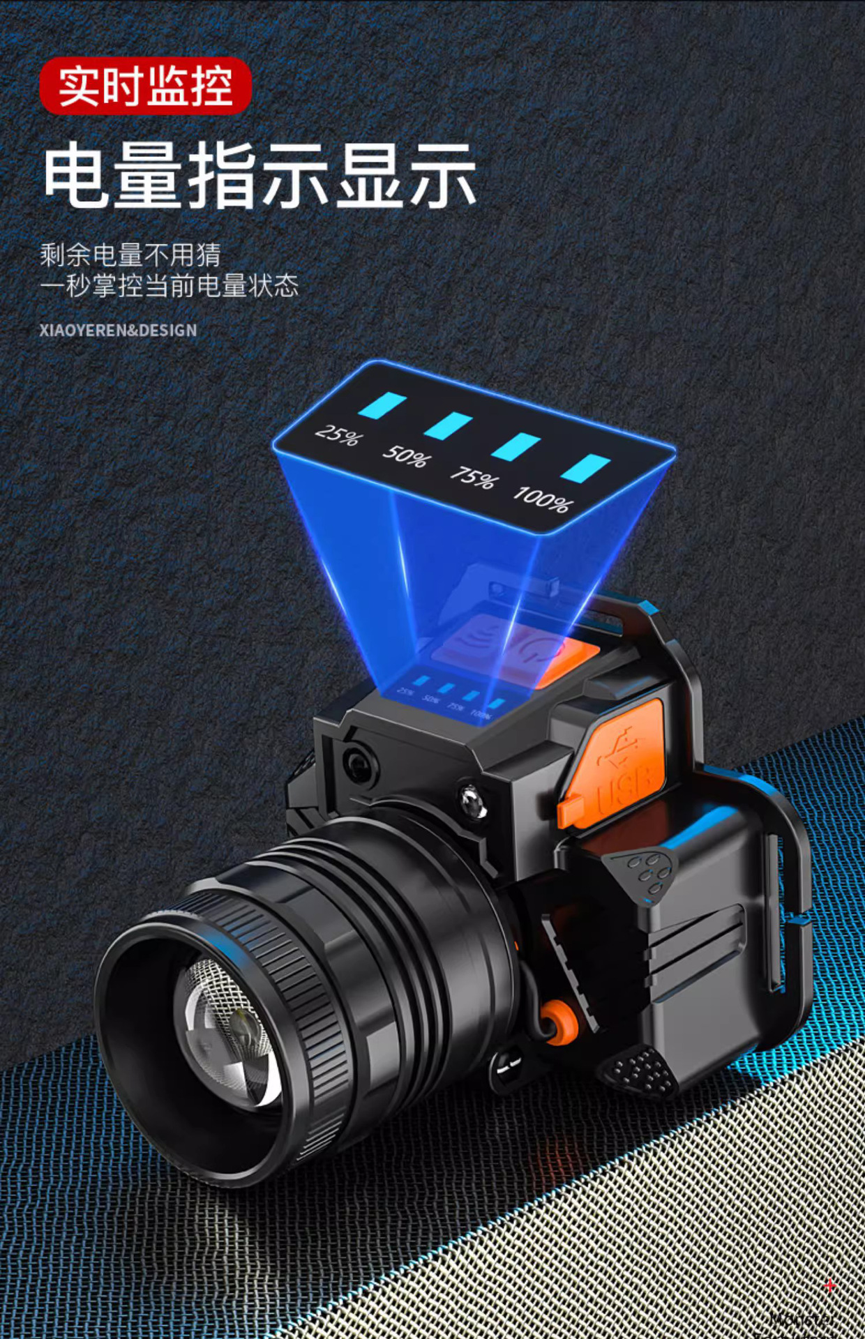 강한 빛을 가진 헤드라이트, 매우 밝은 충전식 헤드 장착형, 매우 긴 배터리 수명, 야외 야간 낚시용 리튬 배터리, 특수 경량 유도 광부 램프