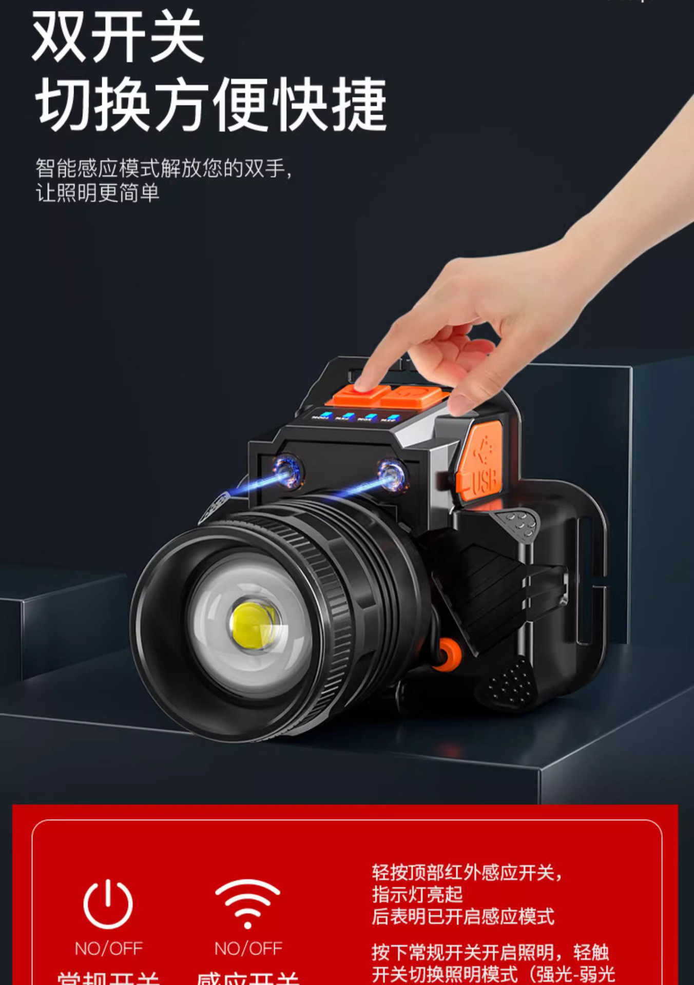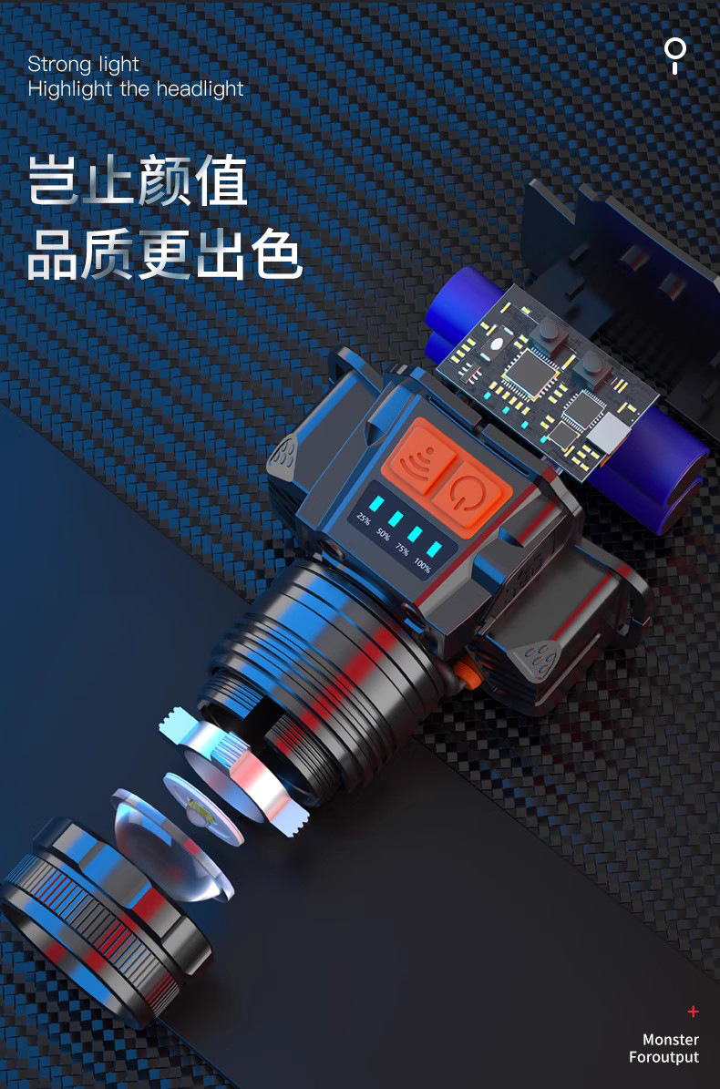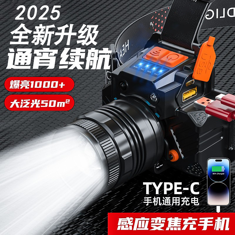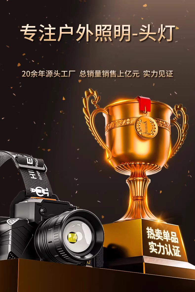 강한 빛을 가진 헤드라이트, 매우 밝은 충전식 헤드 장착형, 매우 긴 배터리 수명, 야외 야간 낚시용 리튬 배터리, 특수 경량 유도 광부 램프