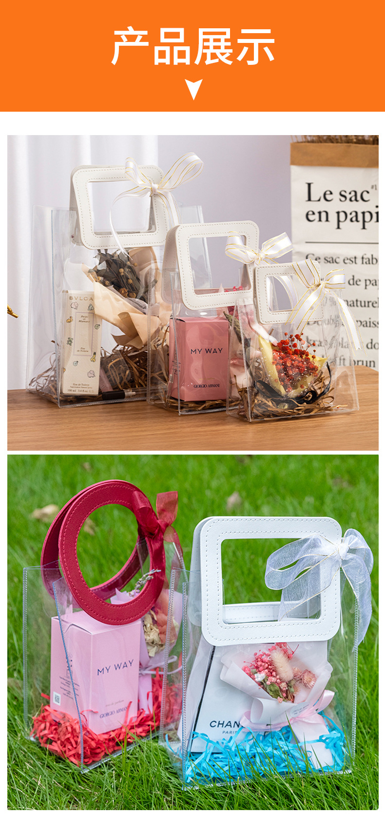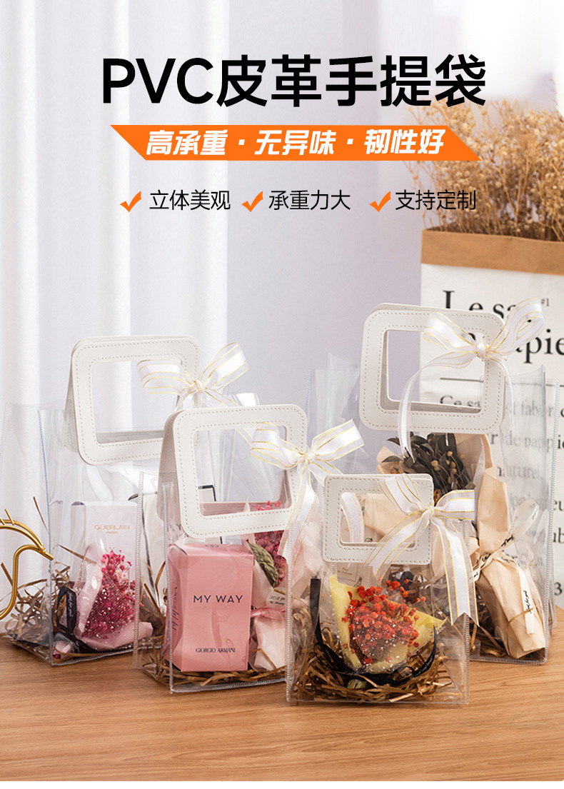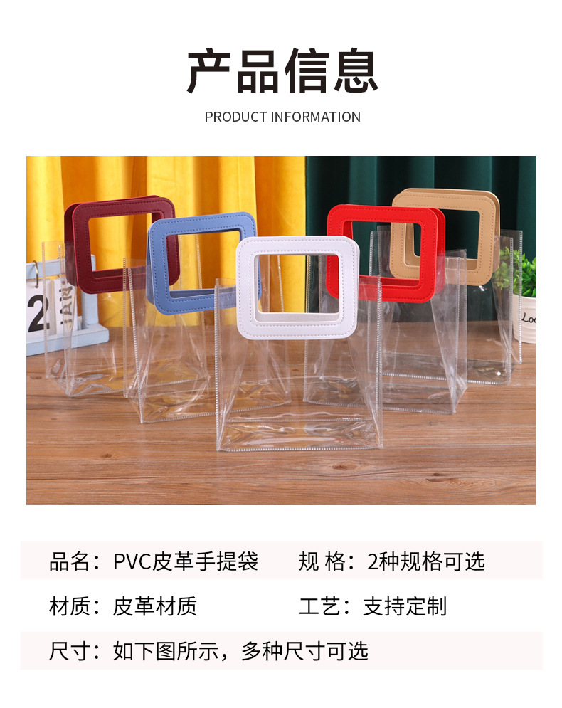 투명한 PVC 핸드백, 두껍고 튼튼한 가죽 소재, 인터넷 유명 브랜드, 슈퍼마켓 쇼핑, 외출, 세면용품, 방수 수납 가방스토어 가기
