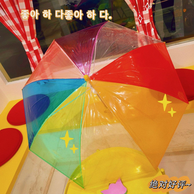 무지개 우산 어린이 투명 우산 소녀 초등학생 귀여운 소년 유치원 아기 성능 작은 긴 손잡이 우산