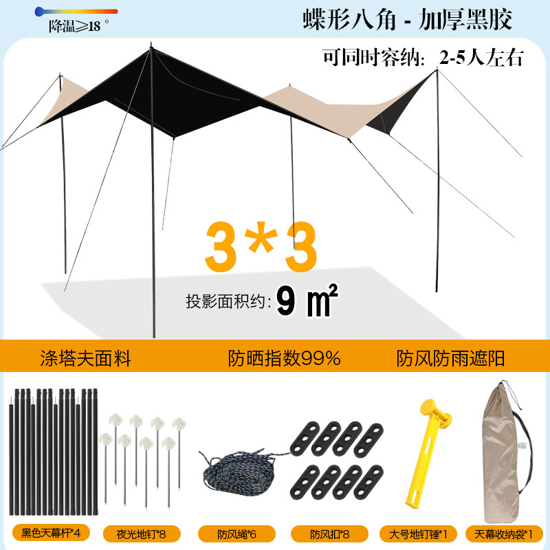 야외 캐노피 텐트 천막 두꺼운 실버 플라스틱 블랙 플라스틱 캐노피 캠핑 캠핑 피크닉 바베큐 피크닉 도매