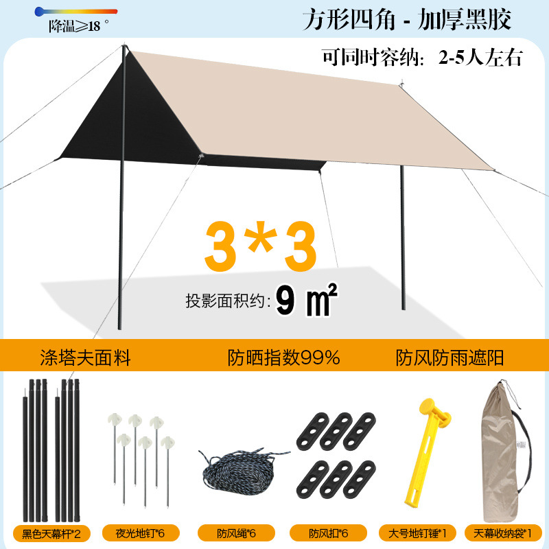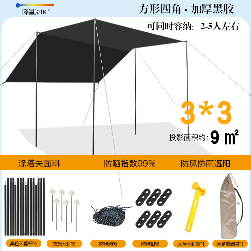 야외 캐노피 텐트 천막 두꺼운 실버 플라스틱 블랙 플라스틱 캐노피 캠핑 캠핑 피크닉 바베큐 피크닉 도매스토어 가기