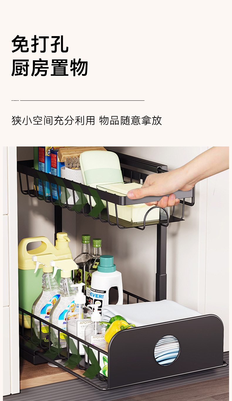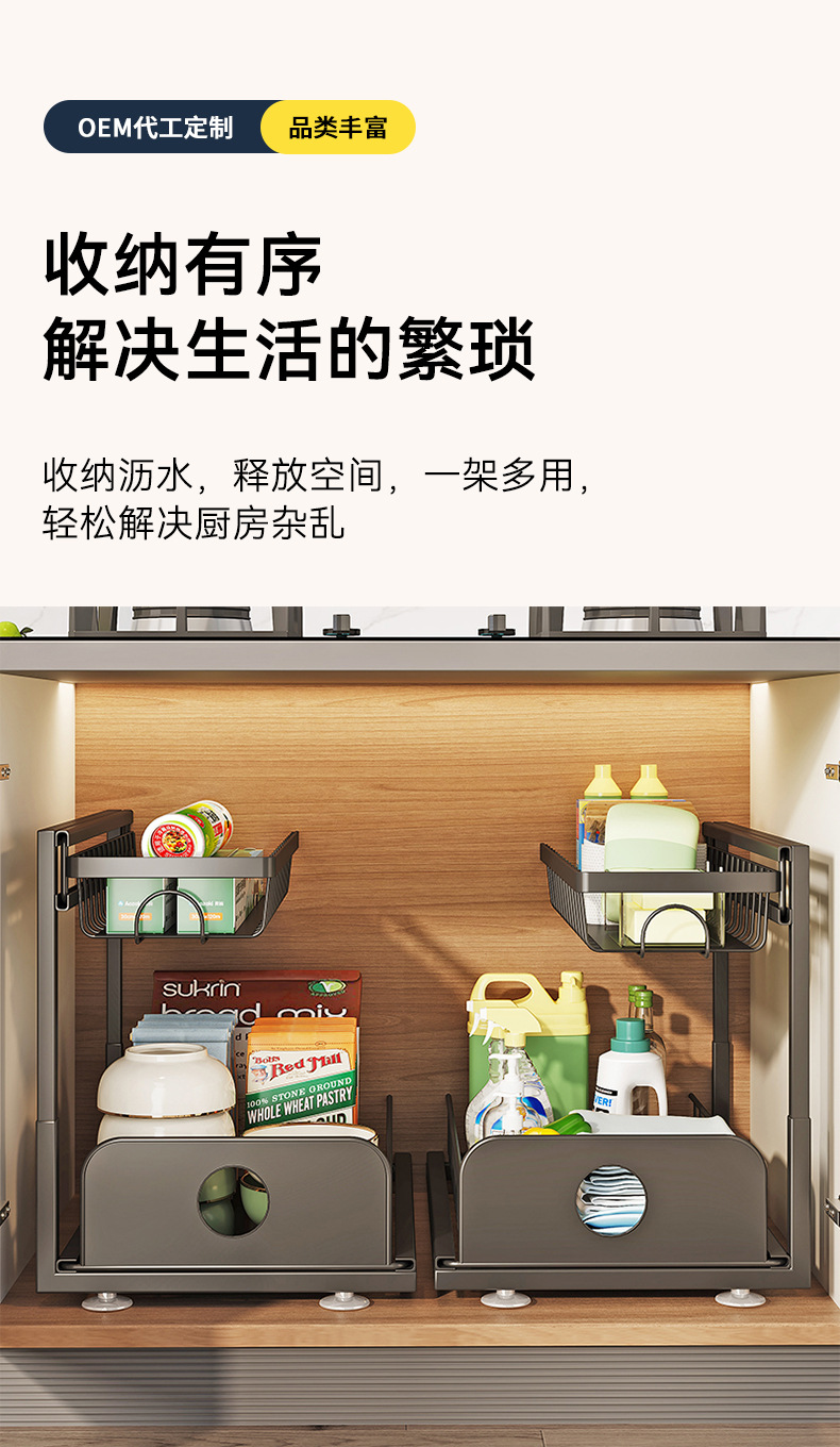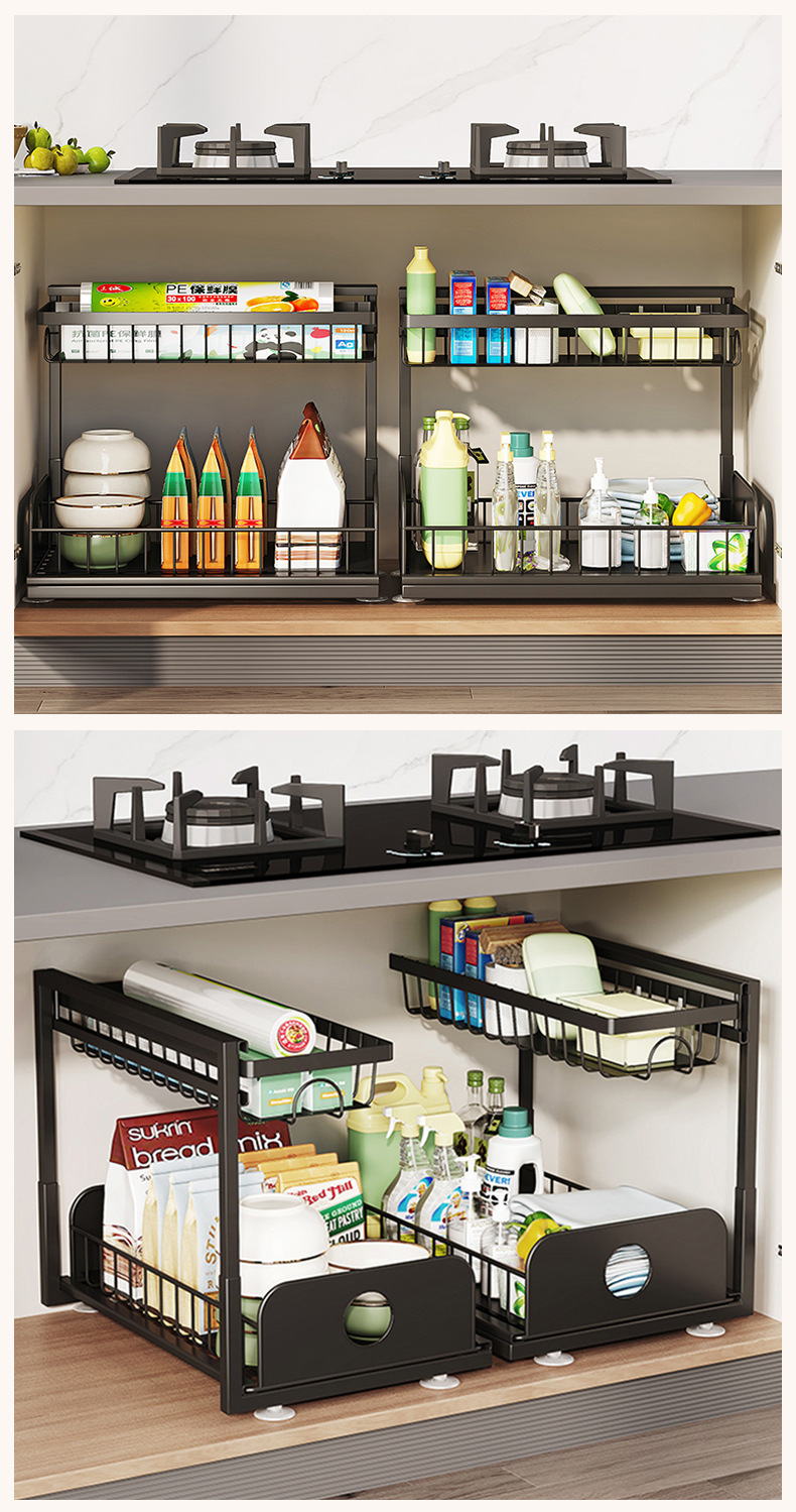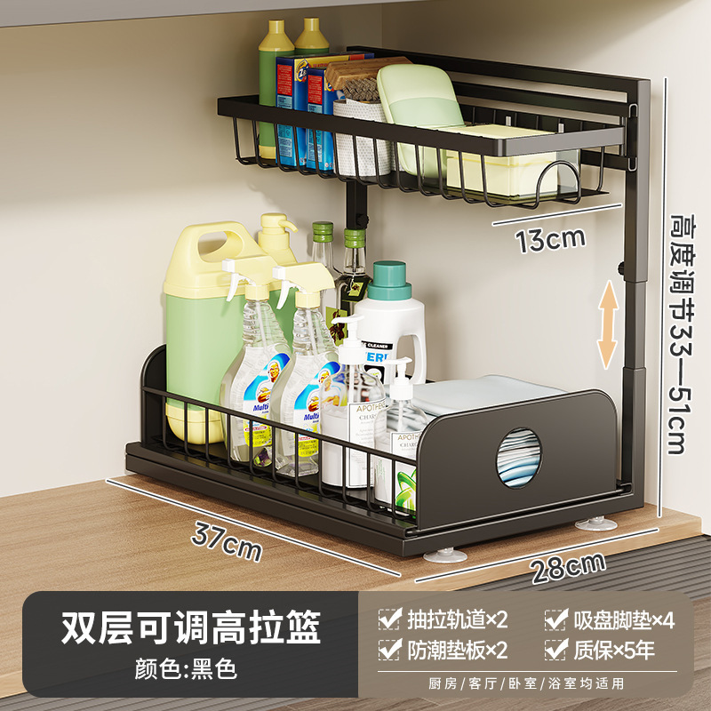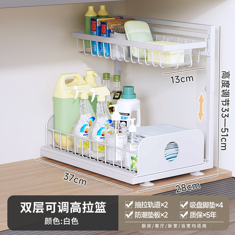 주방 싱크대 아래 맞춤형 수납 선반, 조절 가능한 욕실 바구니, 철제 풀아웃 캐비닛, 2층 수납 바구니